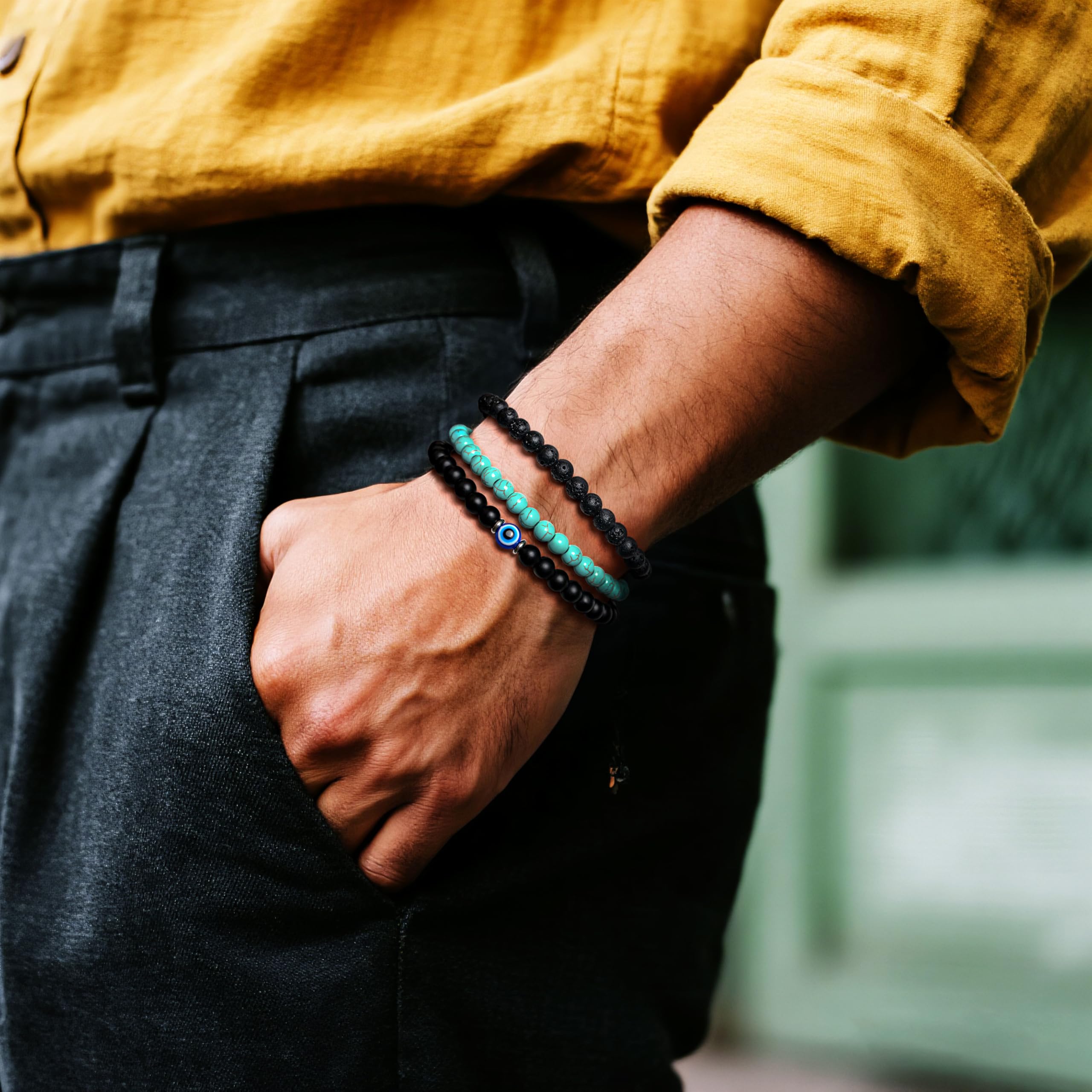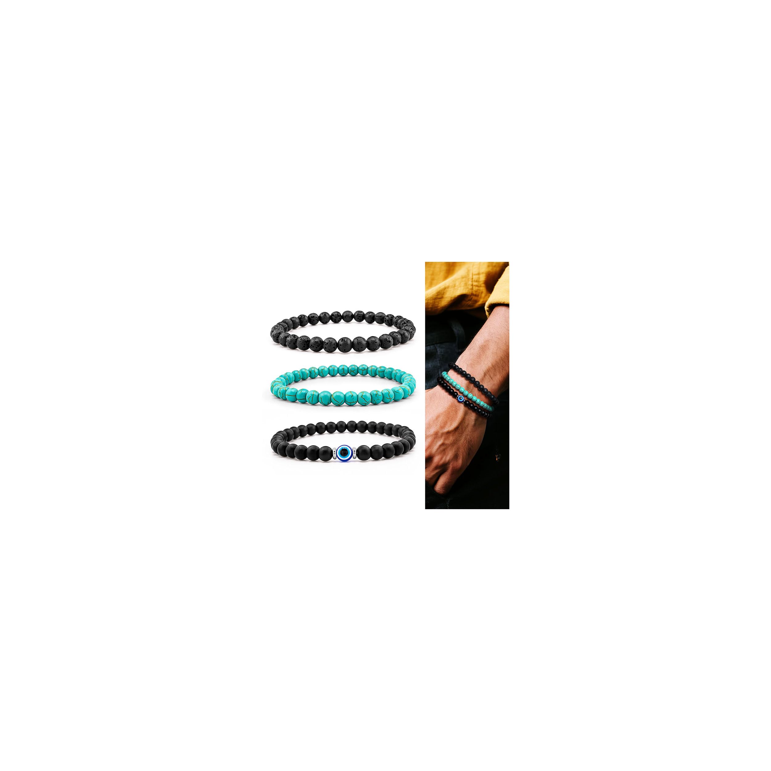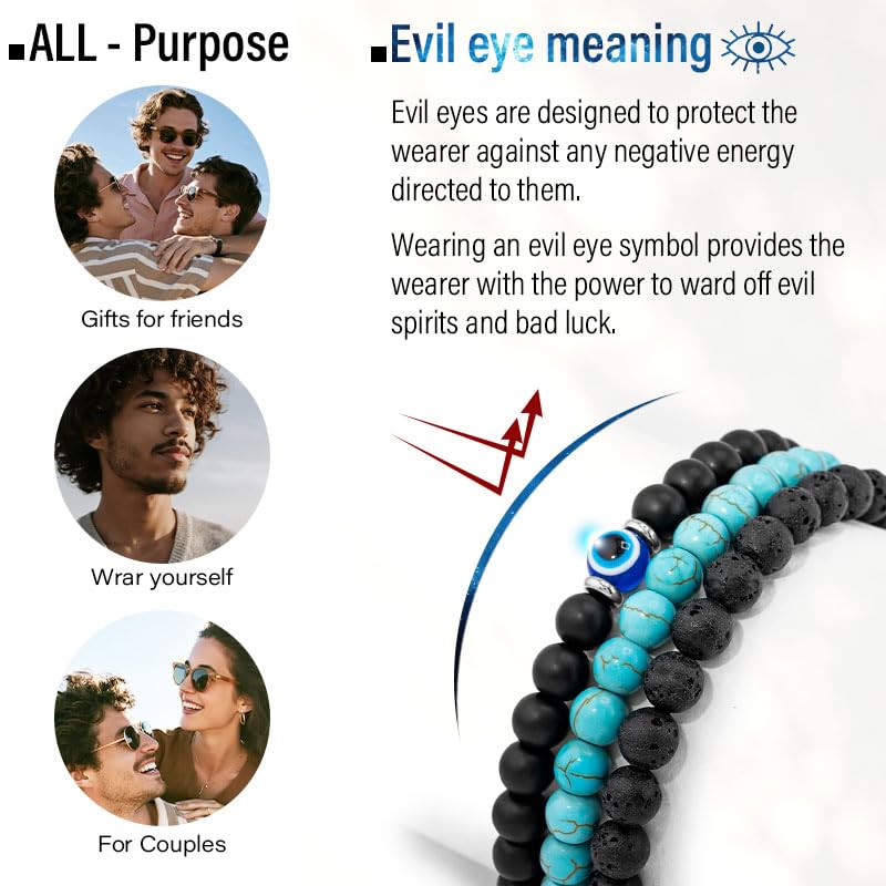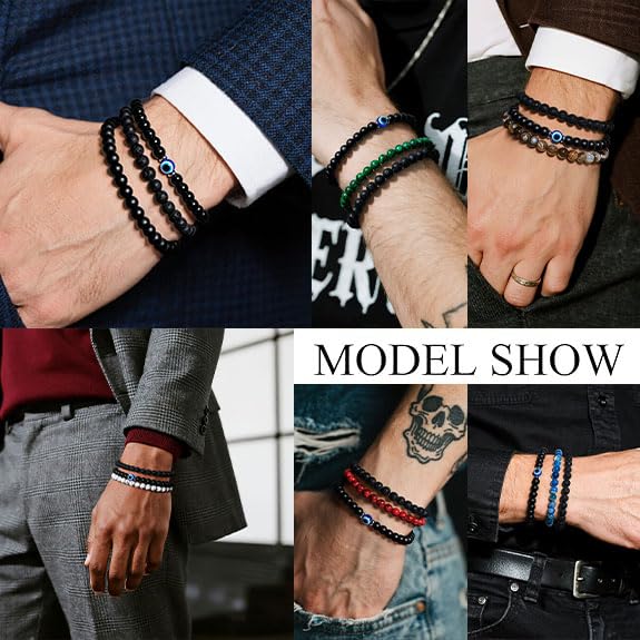Good for daily: Elegant Evil Eye design, more choices for your daily wear. Different colors suitable for any occasion. Cute, business, leisure, simple&classic style bead bracelet set for men