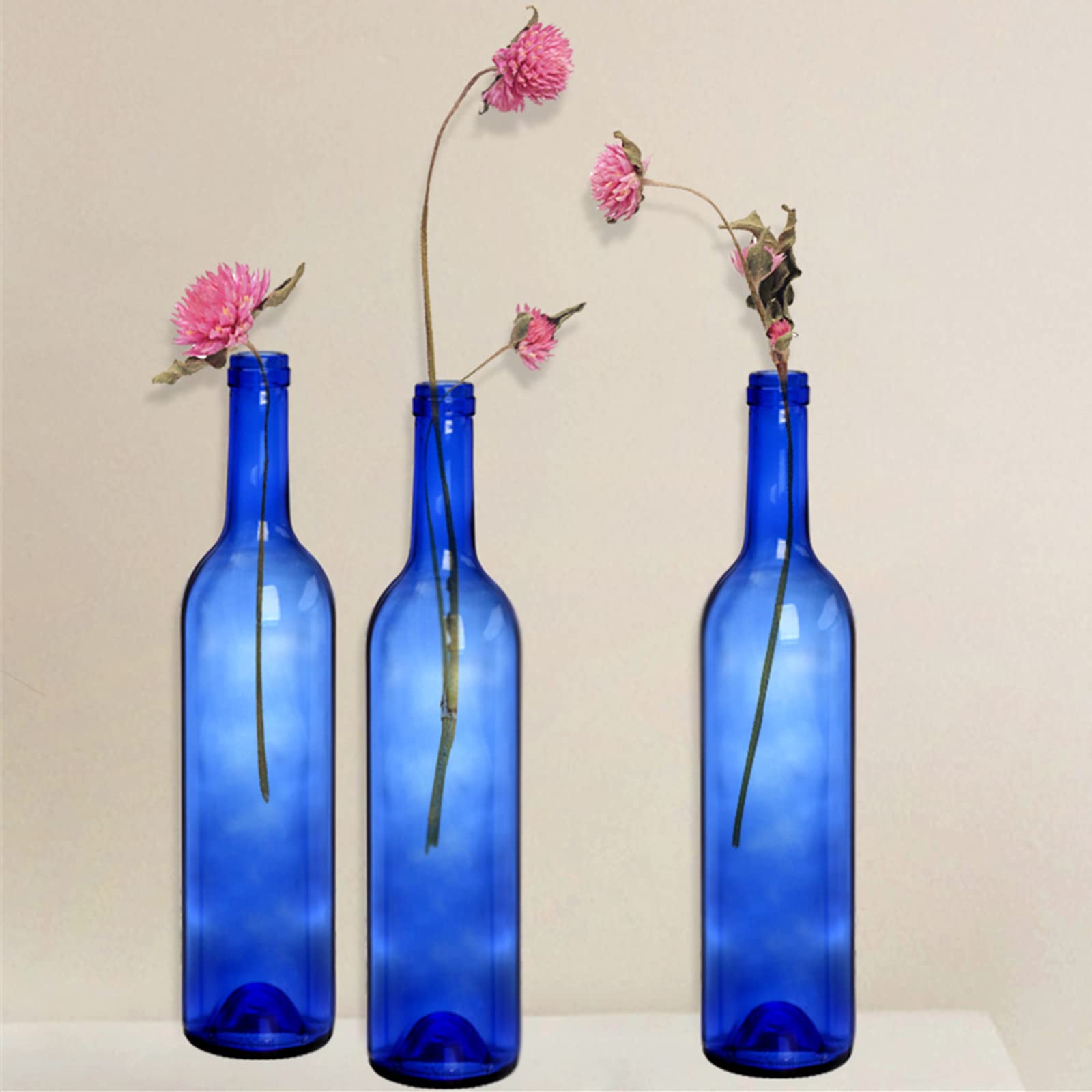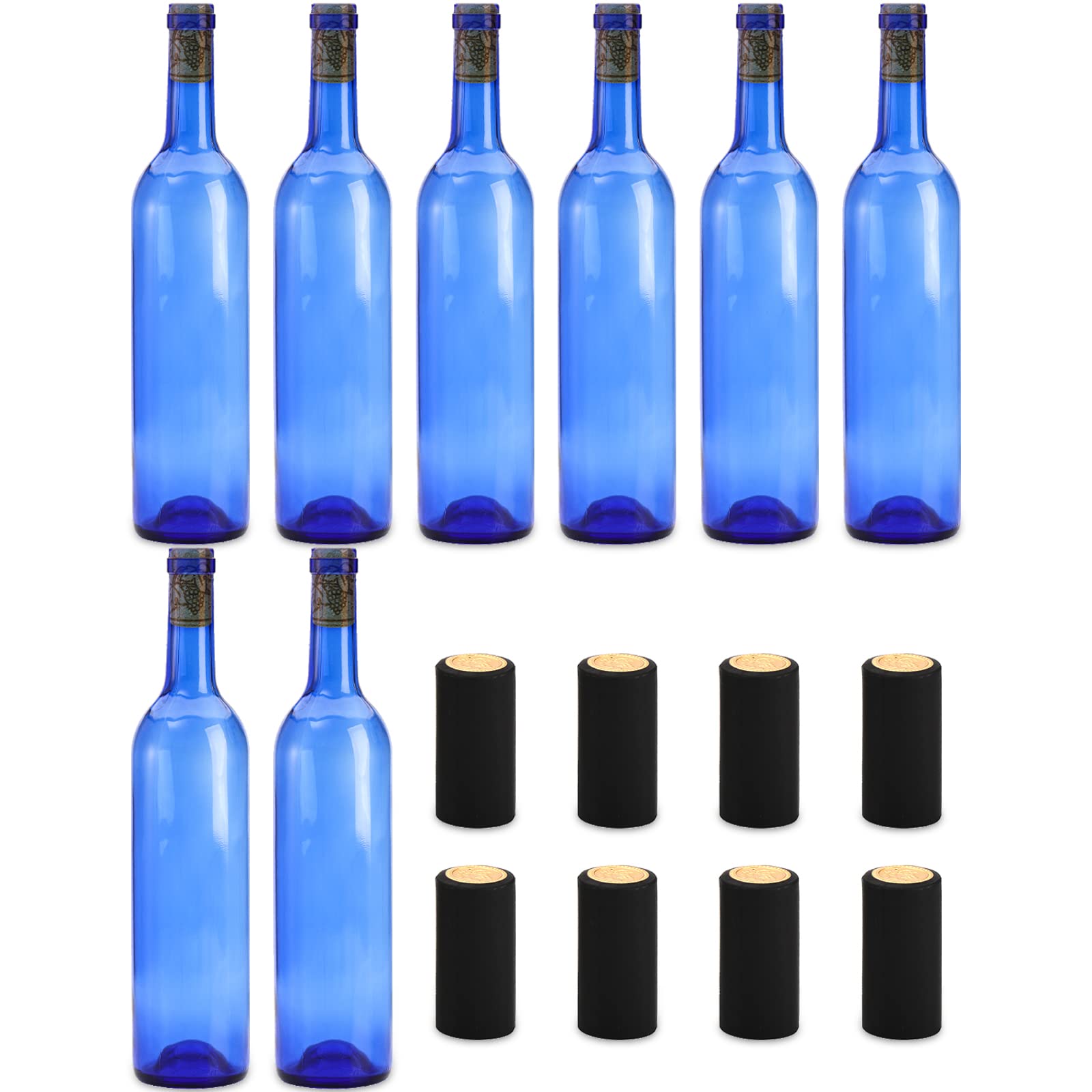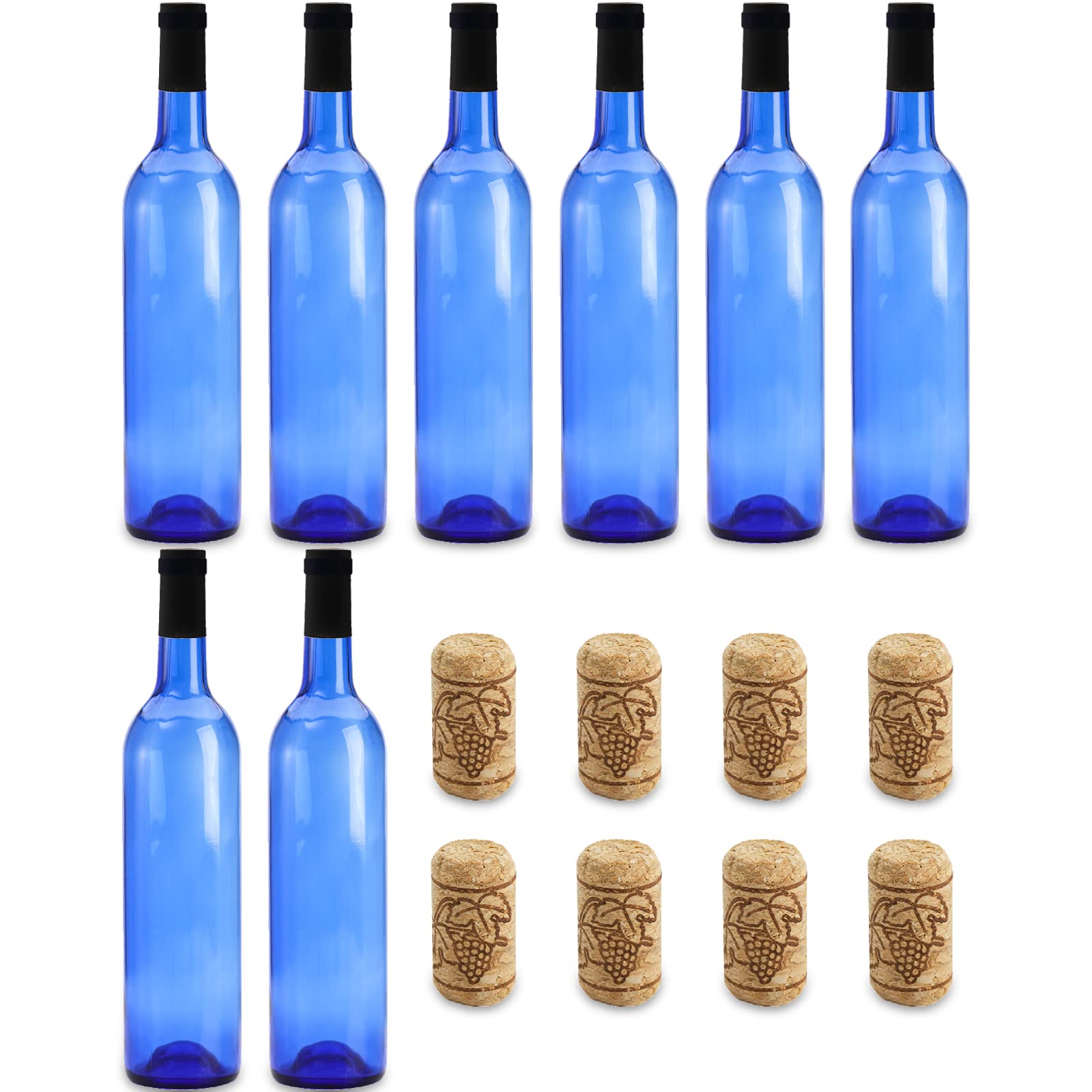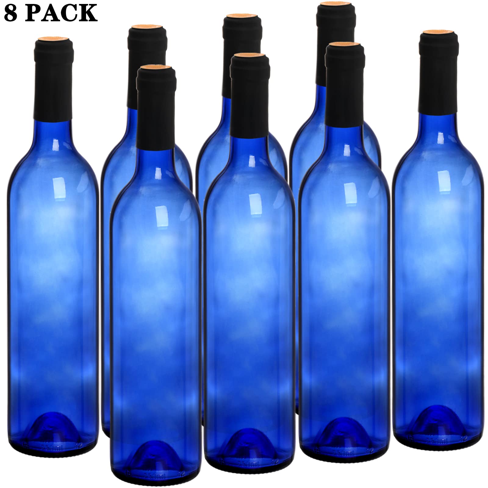 Package includes 8 packs of Bordeaux wine bottles, 8 pcs of premium natural corks and 8 pcs of PVC shrink capsules. Each glass empty bottle measures approx. 3" bottom diameter x 12" height with the maximum capacity of 750 ml/25 oz. Sufficient quantity and large capacity to meet your diverse using needs. Elegant cobalt blue color makes them the chic decors for any space