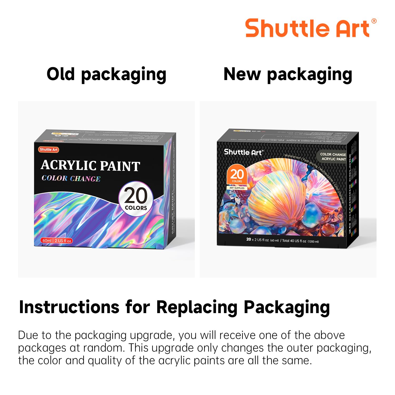 20 CHAMELEON COLORS : Shuttle Art color change acrylic paint contains 20 colors iridescent paints in bottles, 60 m/2 oz each, perfect for painting, crafting, art innovation and more