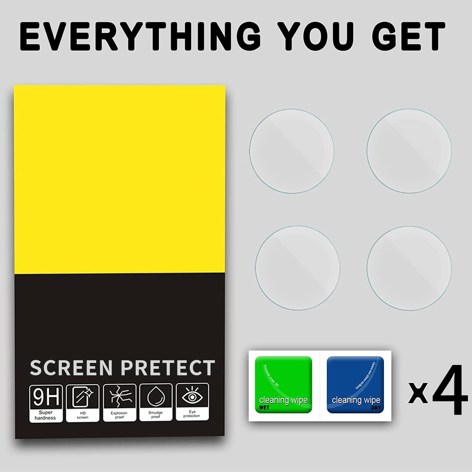 Package: 4 Pack 40mm screen protectors for Samsung galaxy watch 7/6/5/4 40mm, dry and wet alcohol pads,suction cup. PLEASE Must CHECK the SIZE Model before order,ONLY Compatible with Samsung Galaxy Watch 7 40mm(2024 New Released) & Samsung Galaxy Watch 6 40mm(2023 New Released) & Samsung Galaxy Watch 5 40mm(2022) & Samsung Galaxy Watch 4 40mm(2021). If you have any issue with Screen protector have the wrong size, we always here to solve any problem for our customer, thanks.