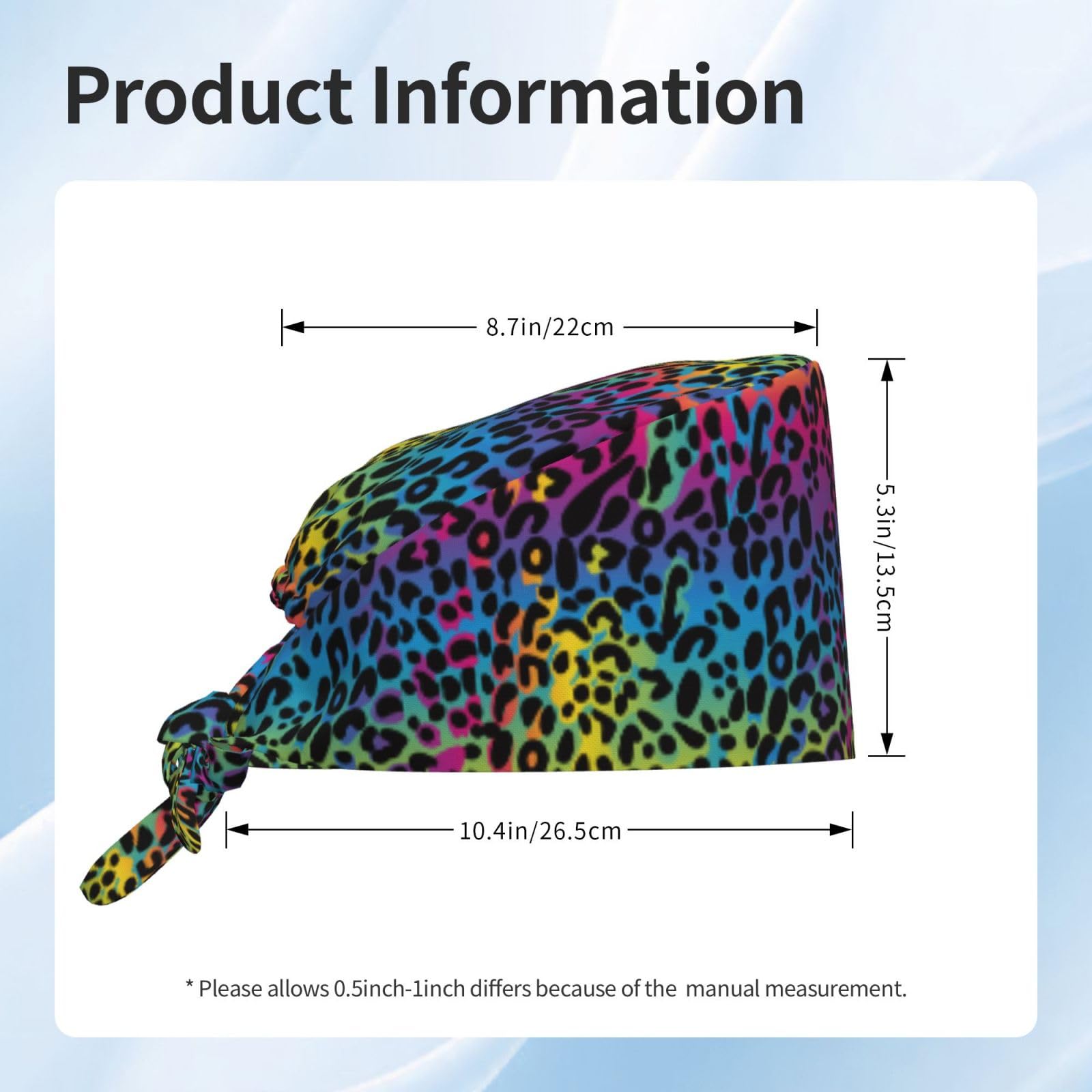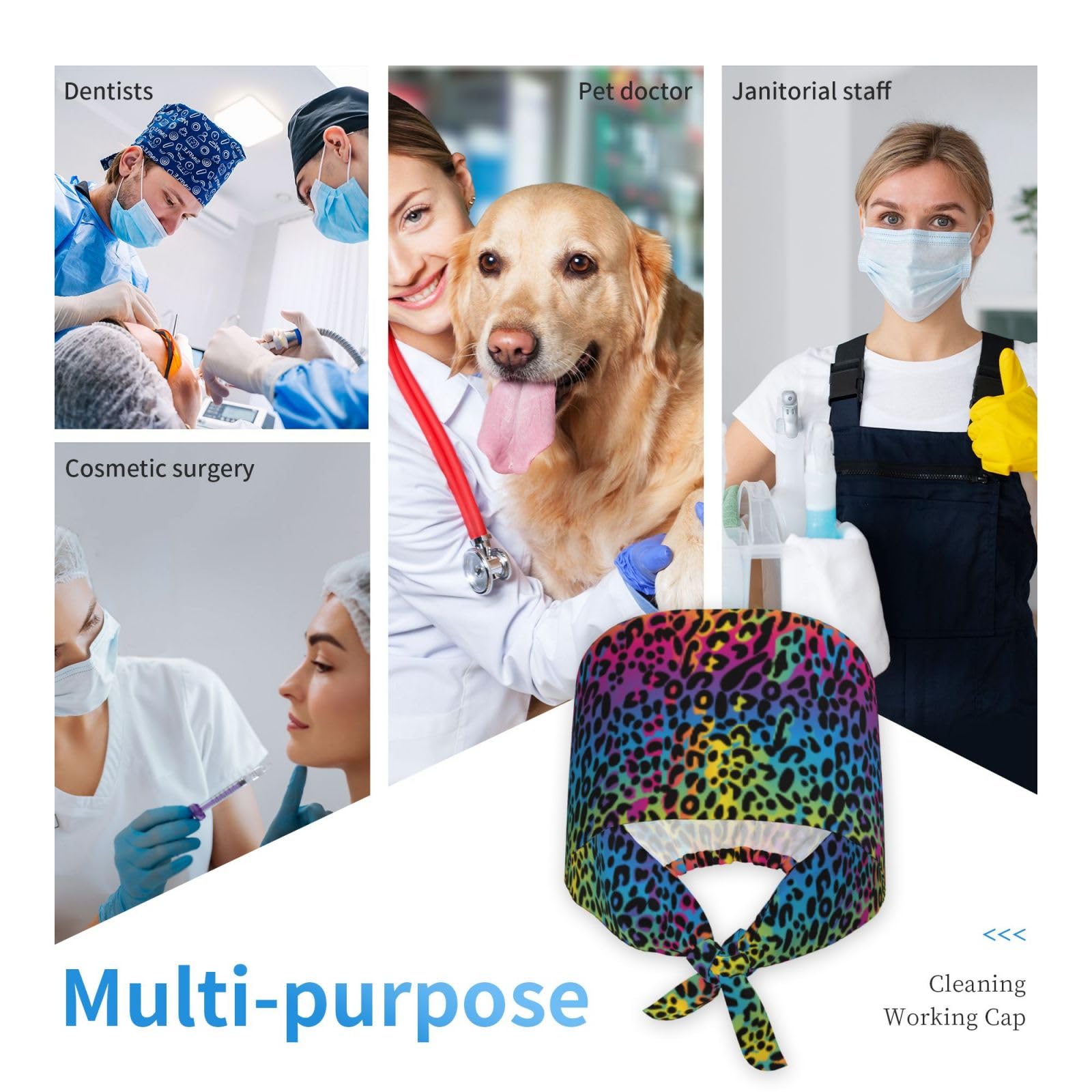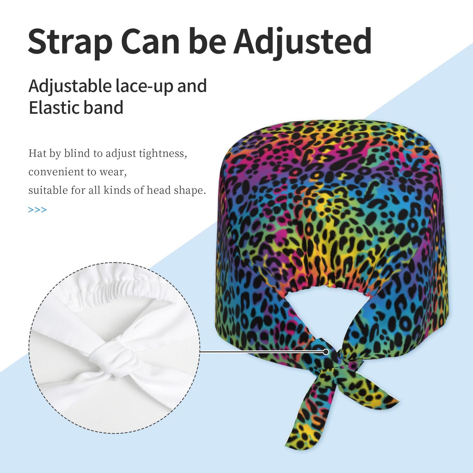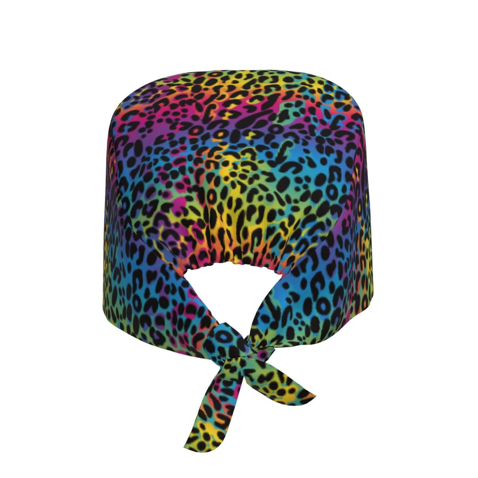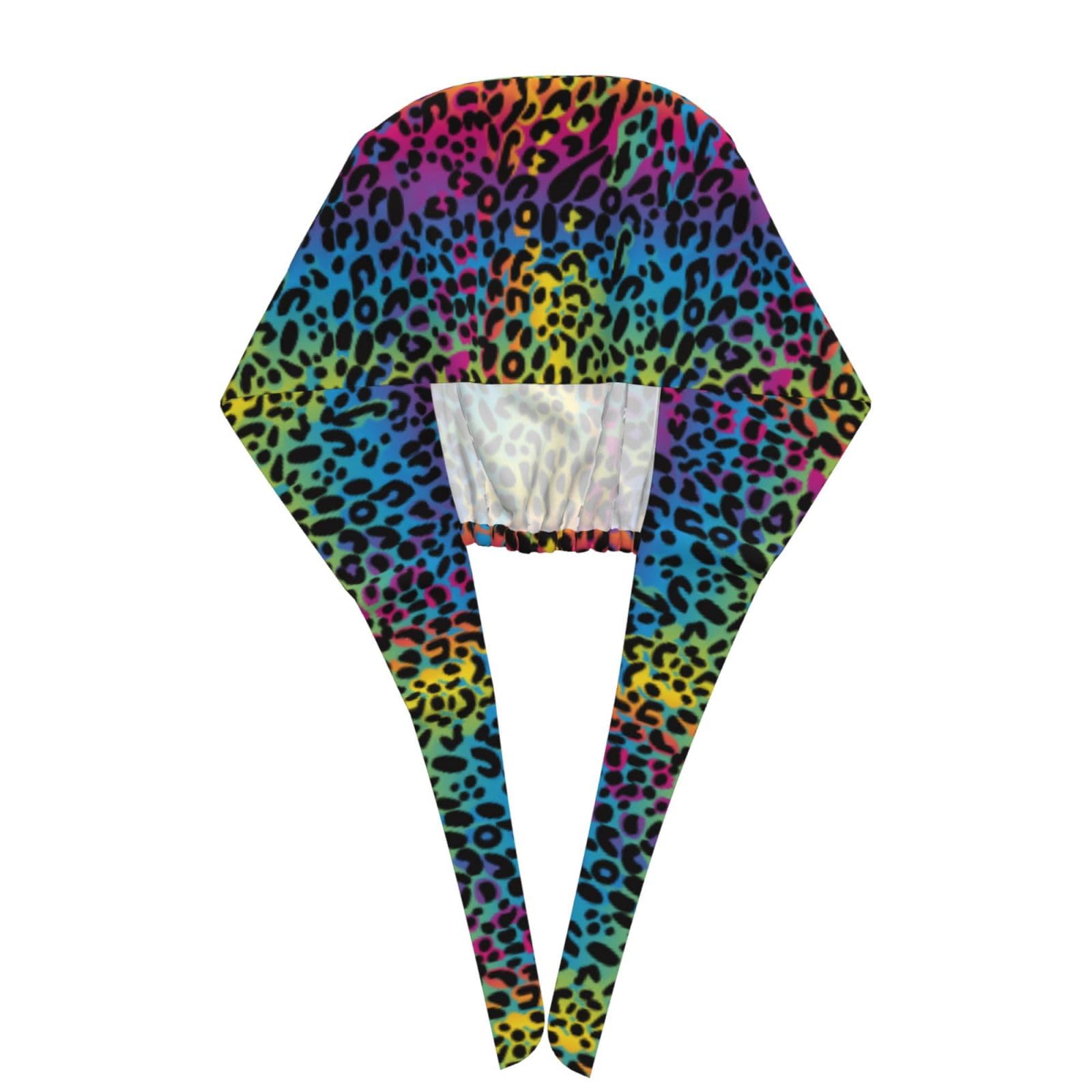 Rainbow Leopard Cheetah Print Colorful Neon Working Cap Scrub Cap with Sweatband Adjustable Unisex Women Tie Back Hat Nurse Surgical Caps