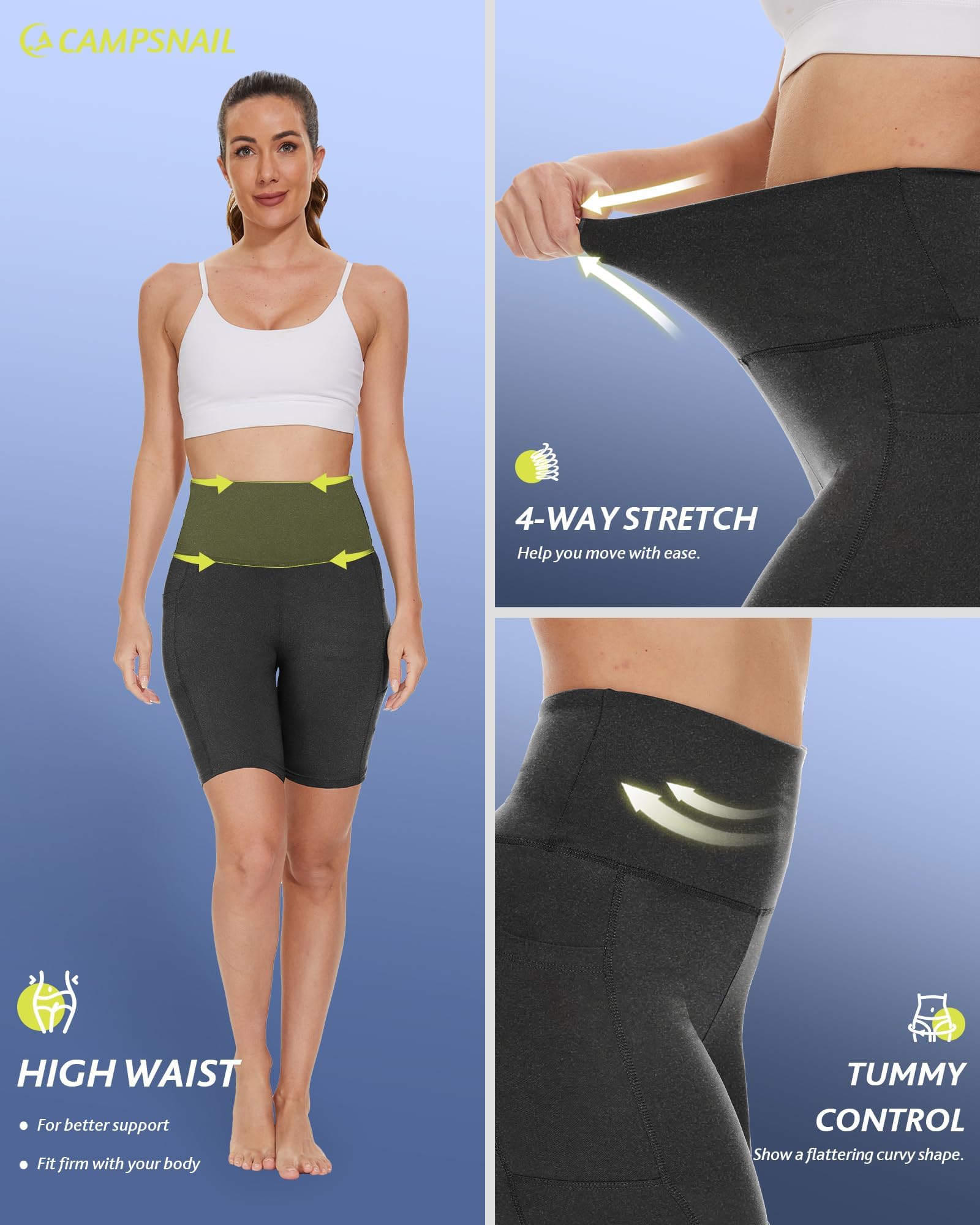 2 Side Large & Deep Pockets: CAMPSNAIL shorts for women comes with 2 large and deep side pockets,which can well carry your phones, cash, card or keys while you workout outside. No worry for your stuffs anymore when going outside