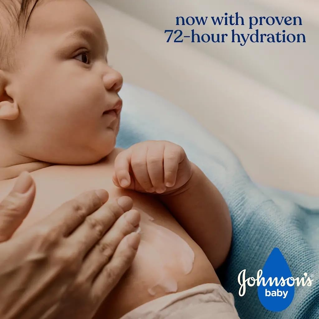 Nourish your little one's skin with Johnson's Baby Body Lotion. Gentle enough for babies and suitable for the whole family, this moisturizing baby lotion with coconut oil hydrates baby's skin for a full 24 hours to keep delicate skin baby soft. Dermatologist- and pediatrician-tested, the improved formula of this nourishing pink baby lotion is designed with input from parents like you. It is hypoallergenic, free of parabens, phthalates, dyes, and harsh fragrances and is 100% gentle on baby's delicate skin. Johnson's Baby Lotion comes in our signature pink bottle and can be used as part of a regular skin care routine by massaging into skin after a bath or any time baby has dry skin. Johnson's baby pink moisturizing lotion with coconut oil hydrates baby's delicate skin Gentle nourishing baby lotion that provides a full 24 hours of dry skin relief. Our hypoallergenic baby lotion is enriched with coconut oil and leaves delicate skin baby soft. The improved formula of this pink baby lotion is 100% gentle & free of dyes, parabens & phthalates Pediatrician-tested and perfectly pH-balanced for baby's delicate skin. This baby body lotion is gentle enough for babies, and is suitable for the whole family Designed with input from parents like you, our baby body lotion is also free of harsh fragrances Baby lotion can be used as part of a regular skin care routine by massaging into skin after a bath.