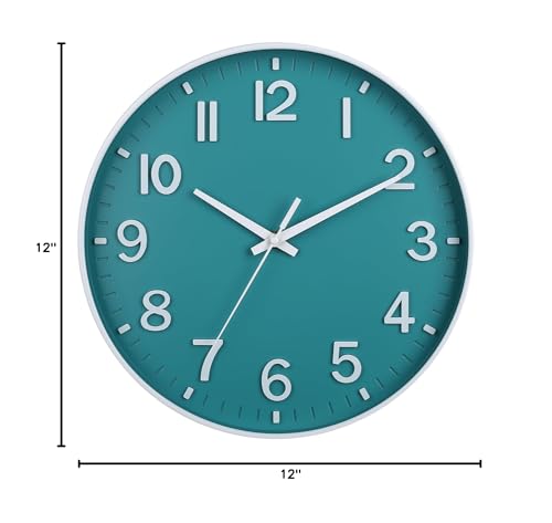 🕒Design —— 12 inches / 30 cm in diameter, weighs about 600 grams. The large Arabic numerals are easy to read and the HD glass cover on the front guarantees a perfect view.Round modern wall clock design suits bedroom,living room,kitchen,school,classroom and office decor. It is also an excellent gift for family and friends.