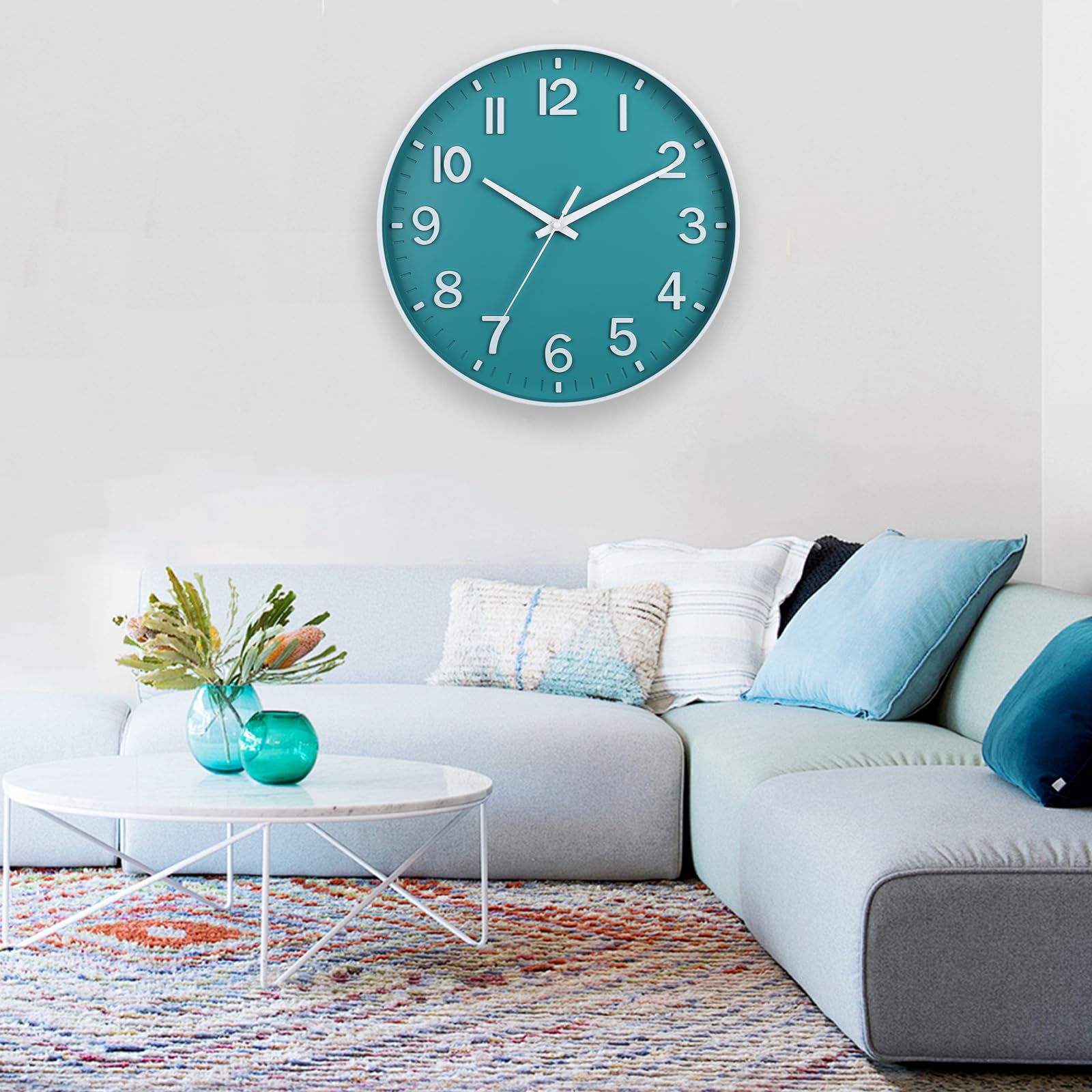 🕒 No Ticking —— The silent wall clock does not emit any annoying ticks, allowing you to enjoy a quiet and comfortable environment in which to sleep and work.