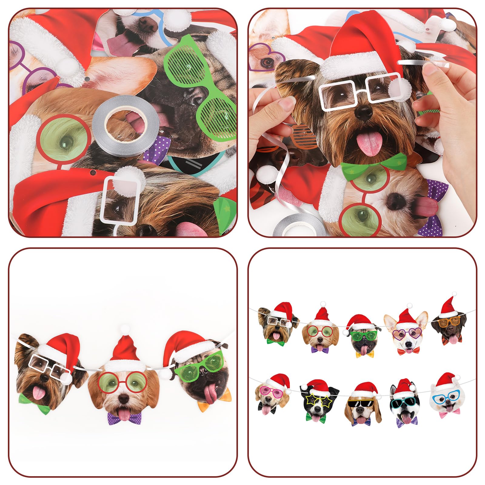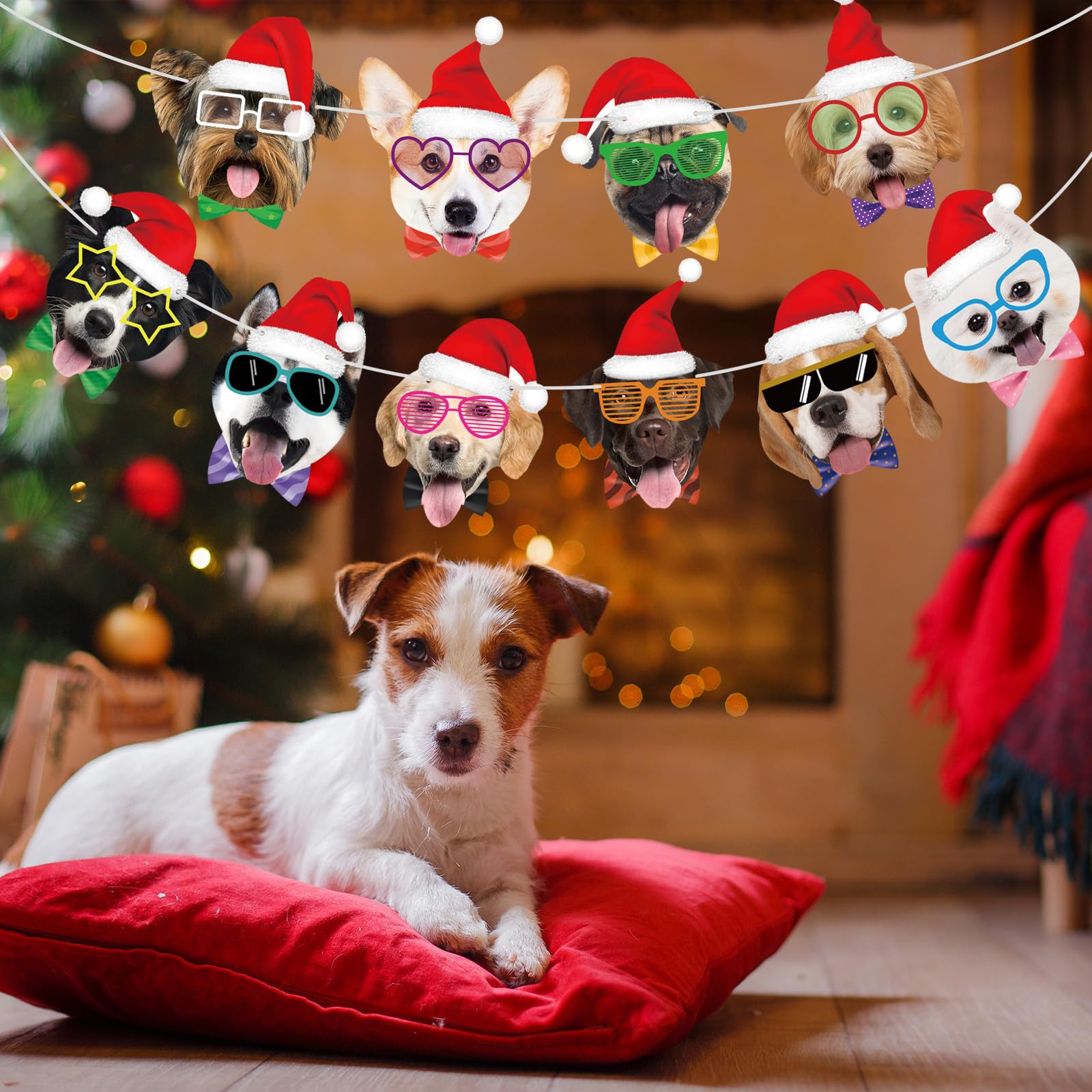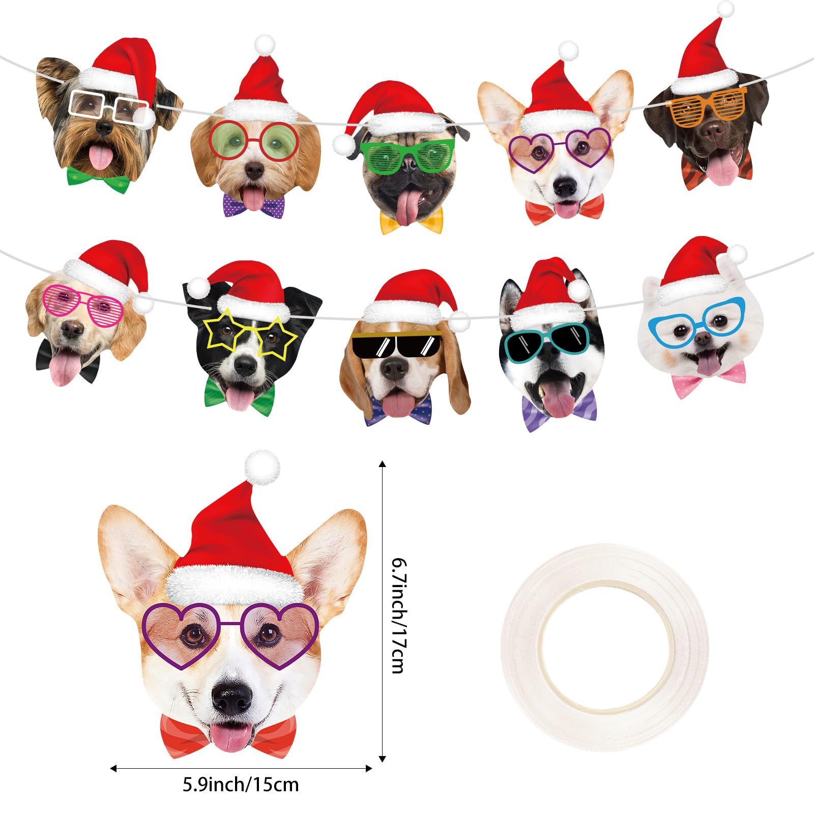 Package Includes: 10 dog Christmas banner with different expressions and a roll of ribbon, not pre-strung, please use the included plastic pins to string the ribbons with all the dog faces, the benefit is that you can customize the length according to the available space