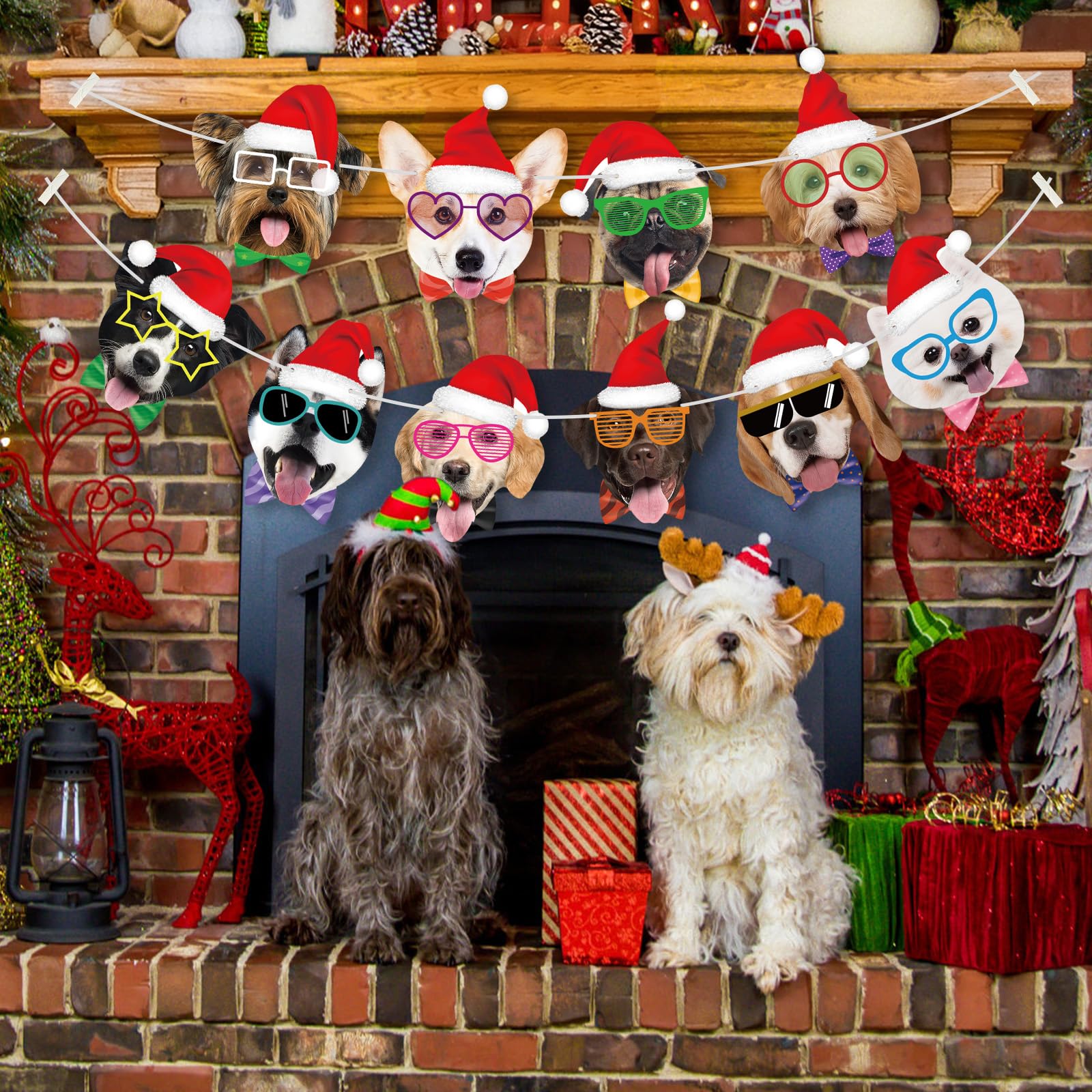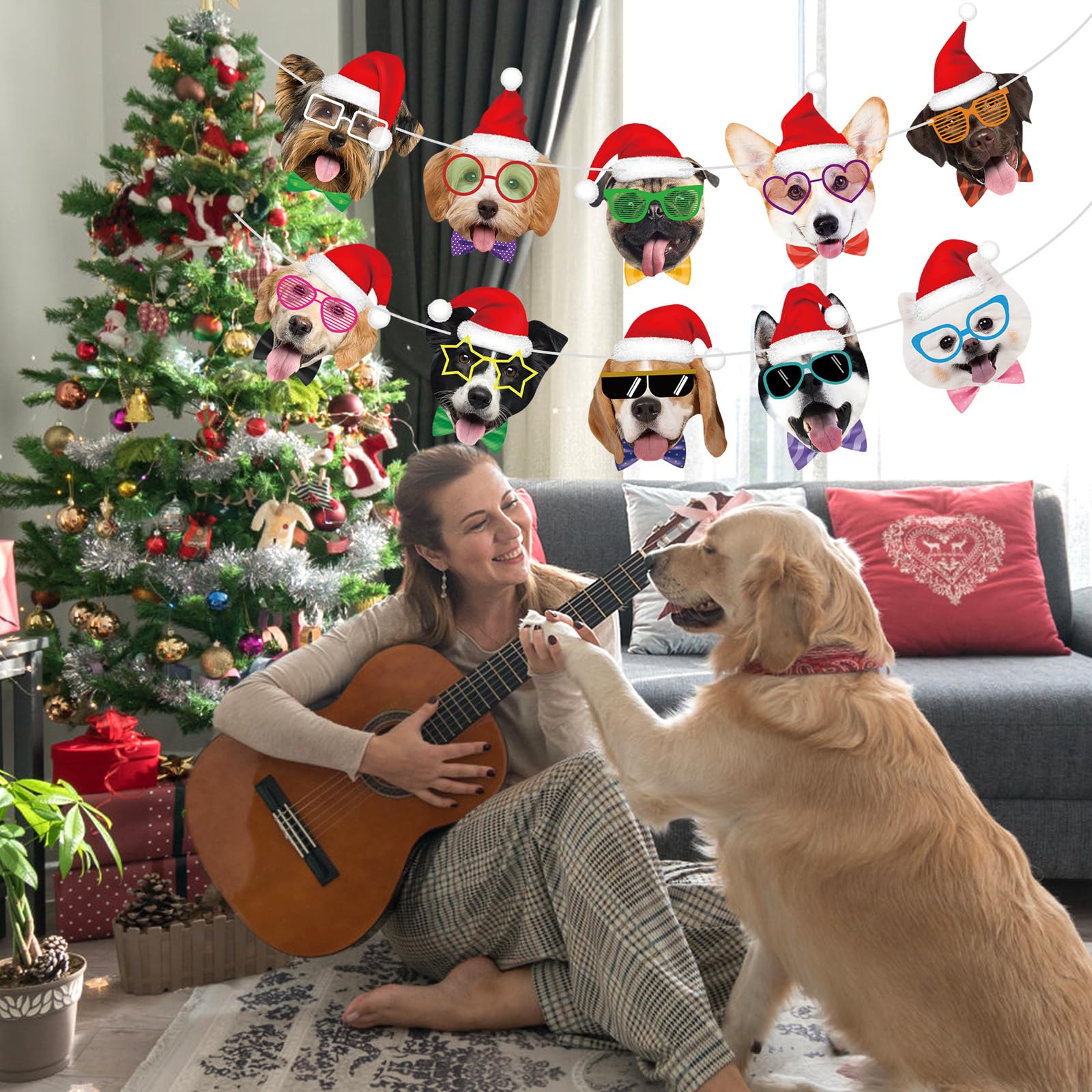Universal: Dog party banner to spice up your Christmas decorations. It can be easily added to any wall, fireplace, window, ceiling, mantel, doorway, archway, Christmas tree, can also be used as a photo background