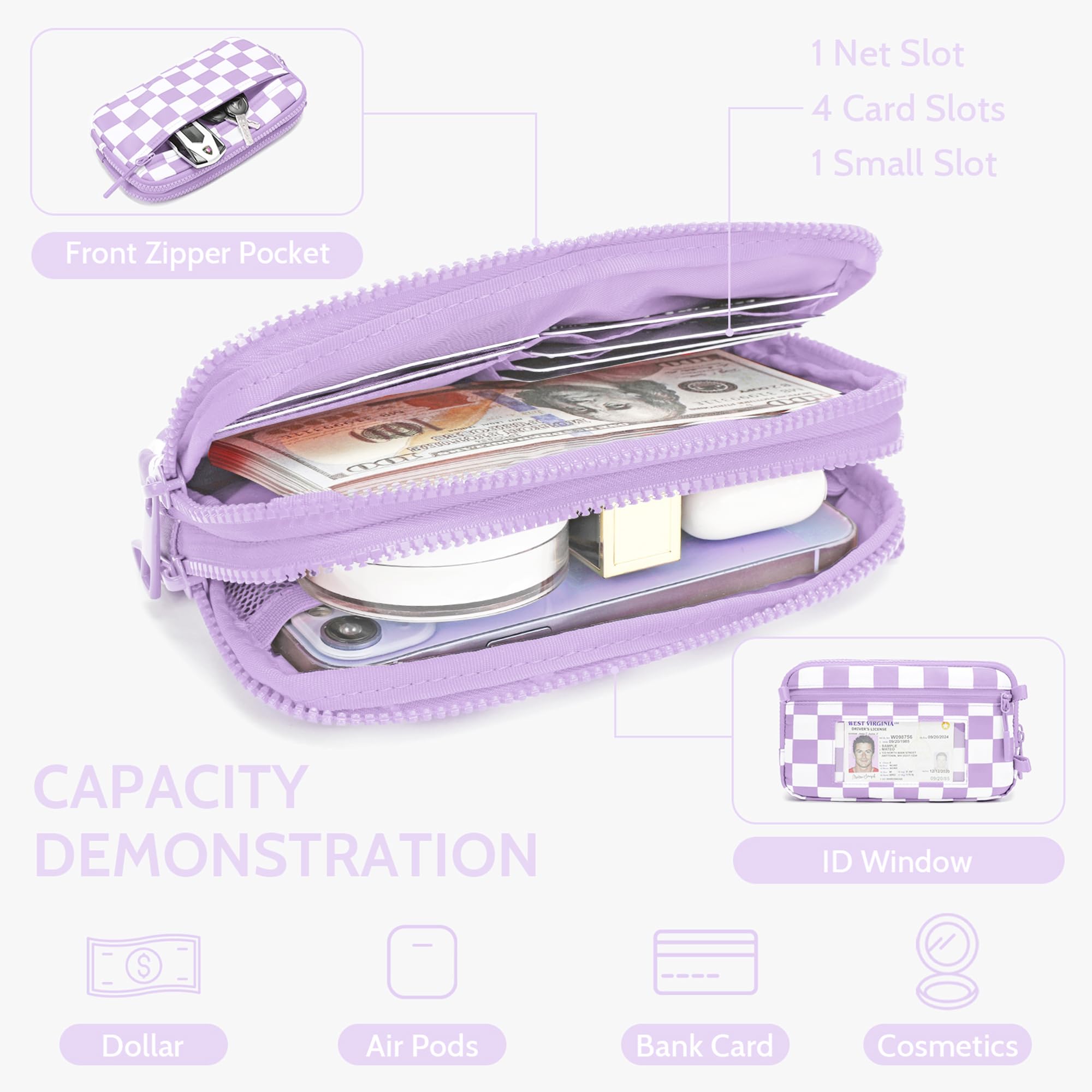 Fashion-Forward Design FODOKO stylish wristlet wallet features a top zipper closure for secure storage, - 6 RFID-blocking card slots+ 4 compartments (2 exterior zipper pockets, 1 ID window, 1 mesh pouch) . Perfect for organizing cards, cash, phones, and daily essentials with ease.
