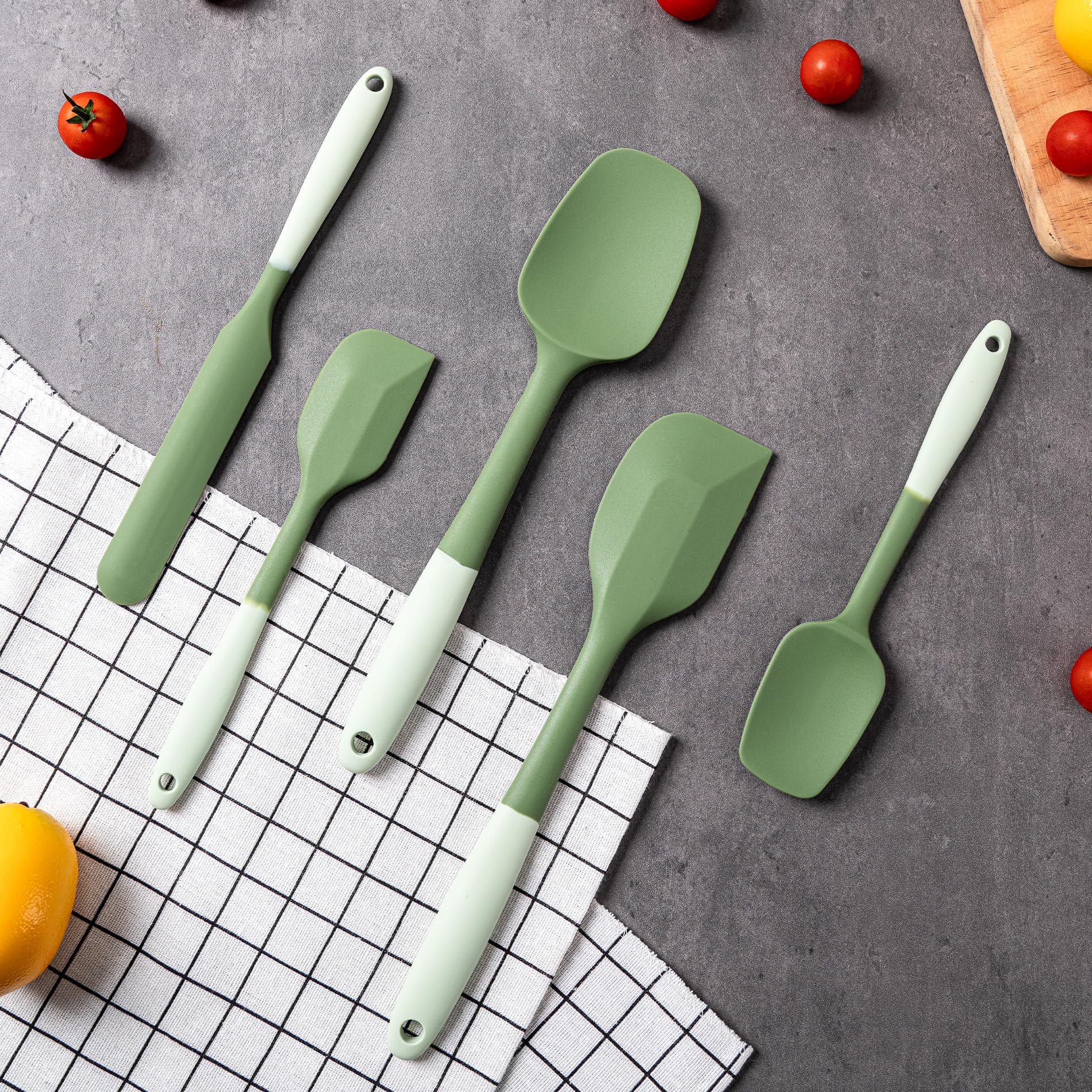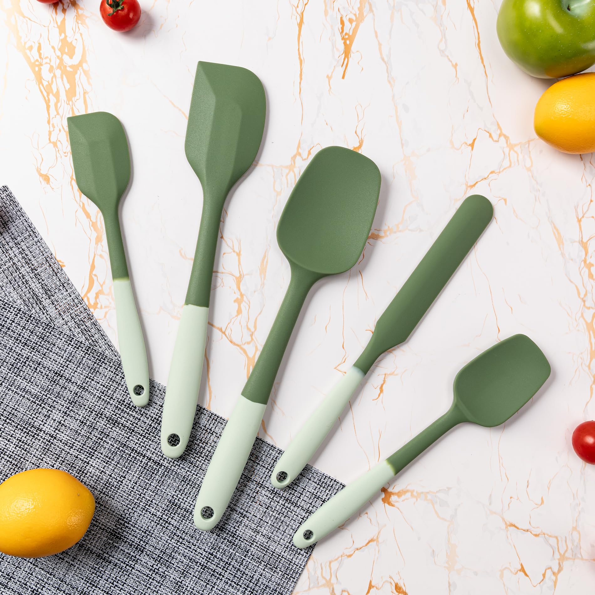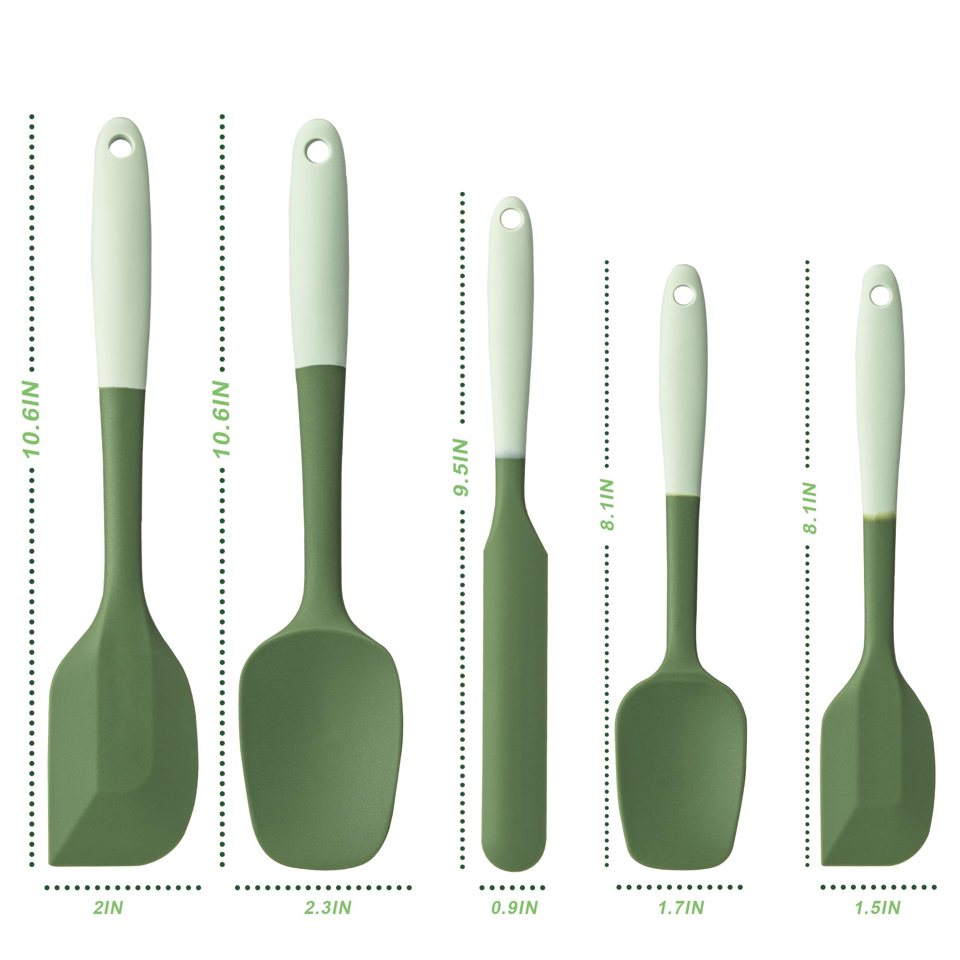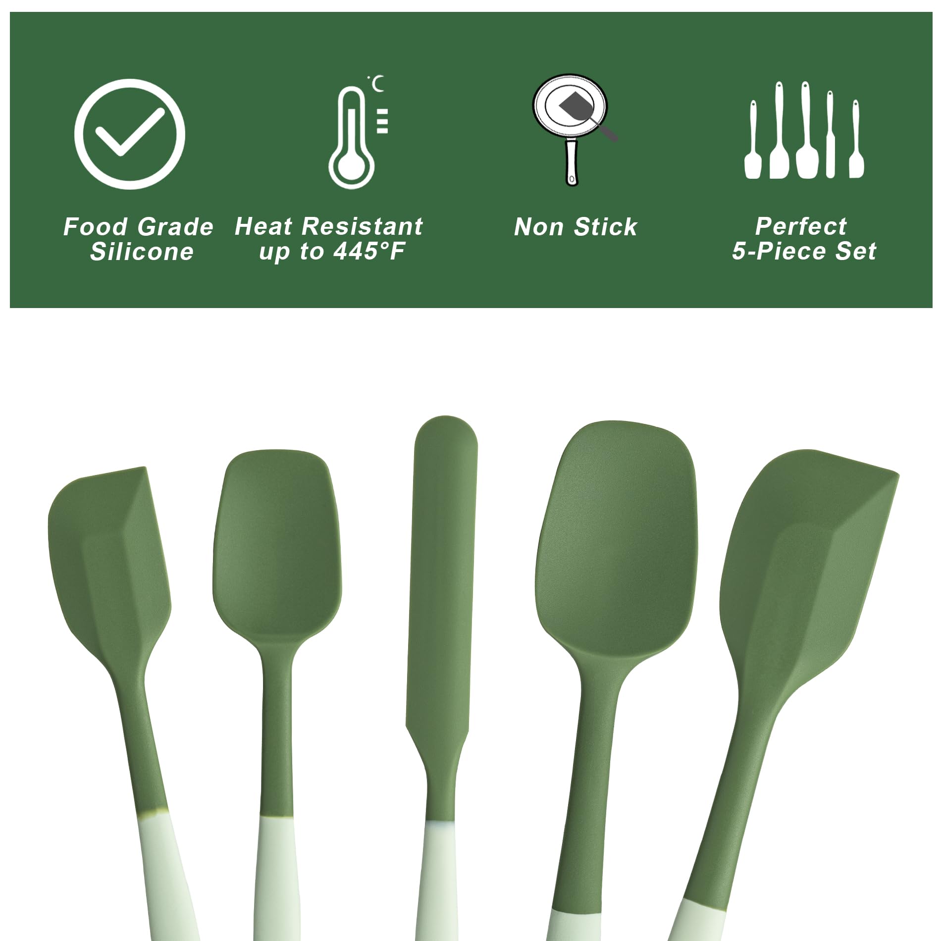 【Versatile Spatula 5-Piece 】:Silicone spatulas heat resistant:1 x large spoon spatula; 1 x large spatula; 1 x medium spatula/knife; 1 x small spatula; 1 x small spoon spatula