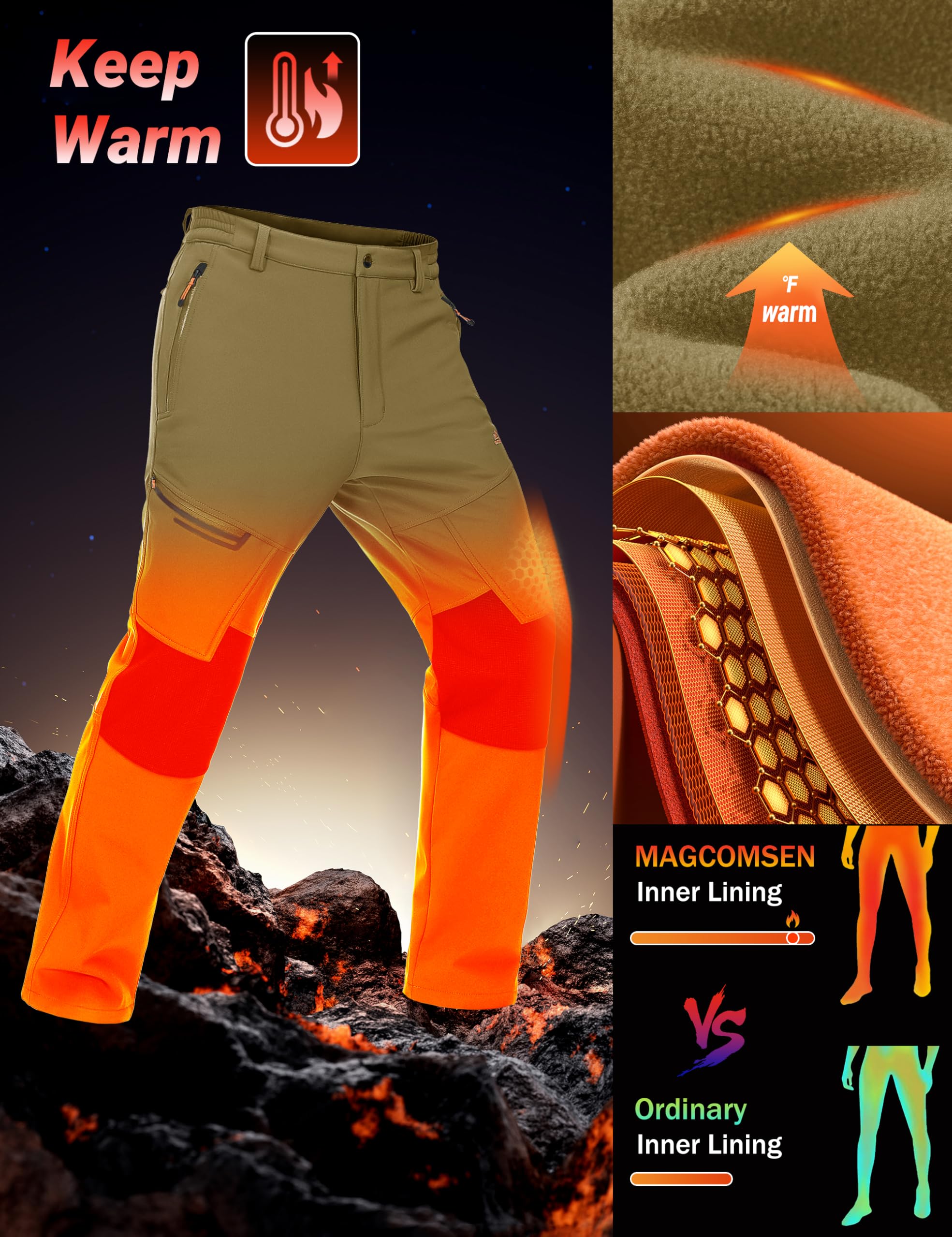 Functional Winter Pants: This Pants is Perfect For Outdoor Activities, Like Hiking, Climbing, Sking, Snowboarding, Winter Sports, Fishing, Working in Winter