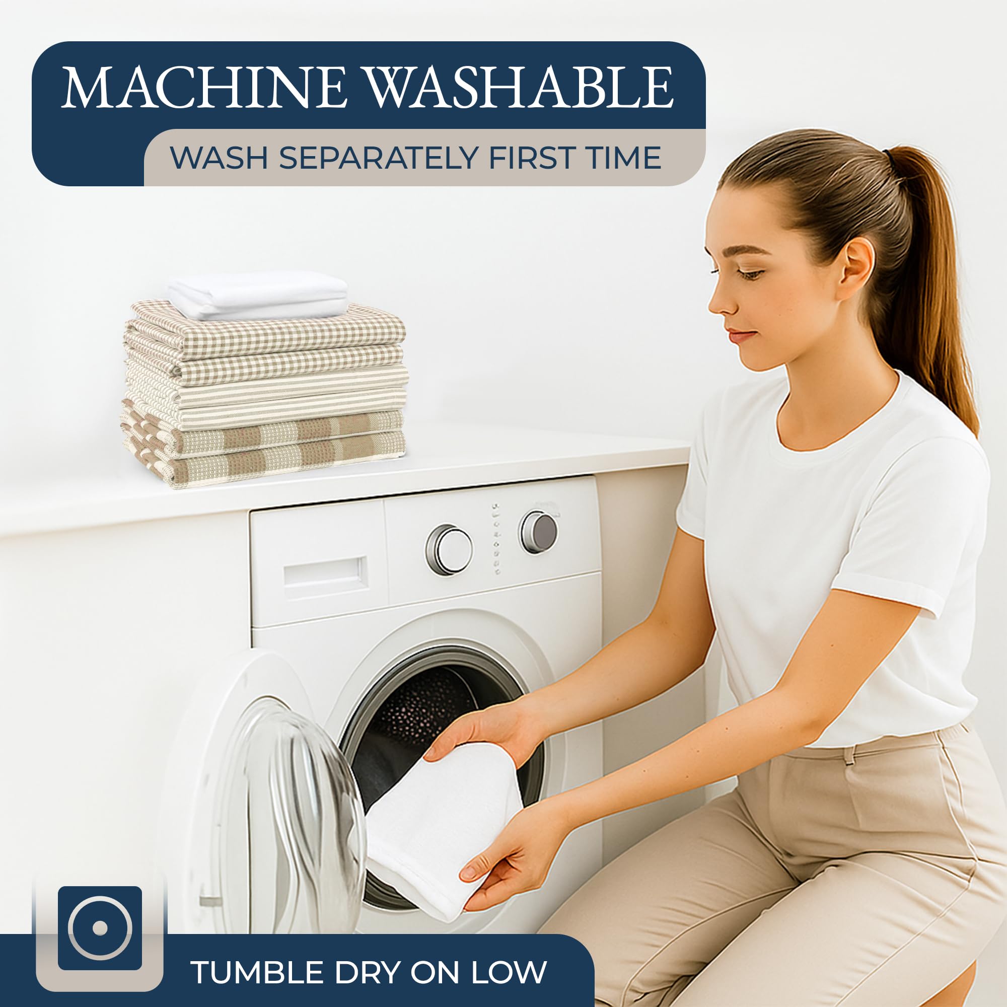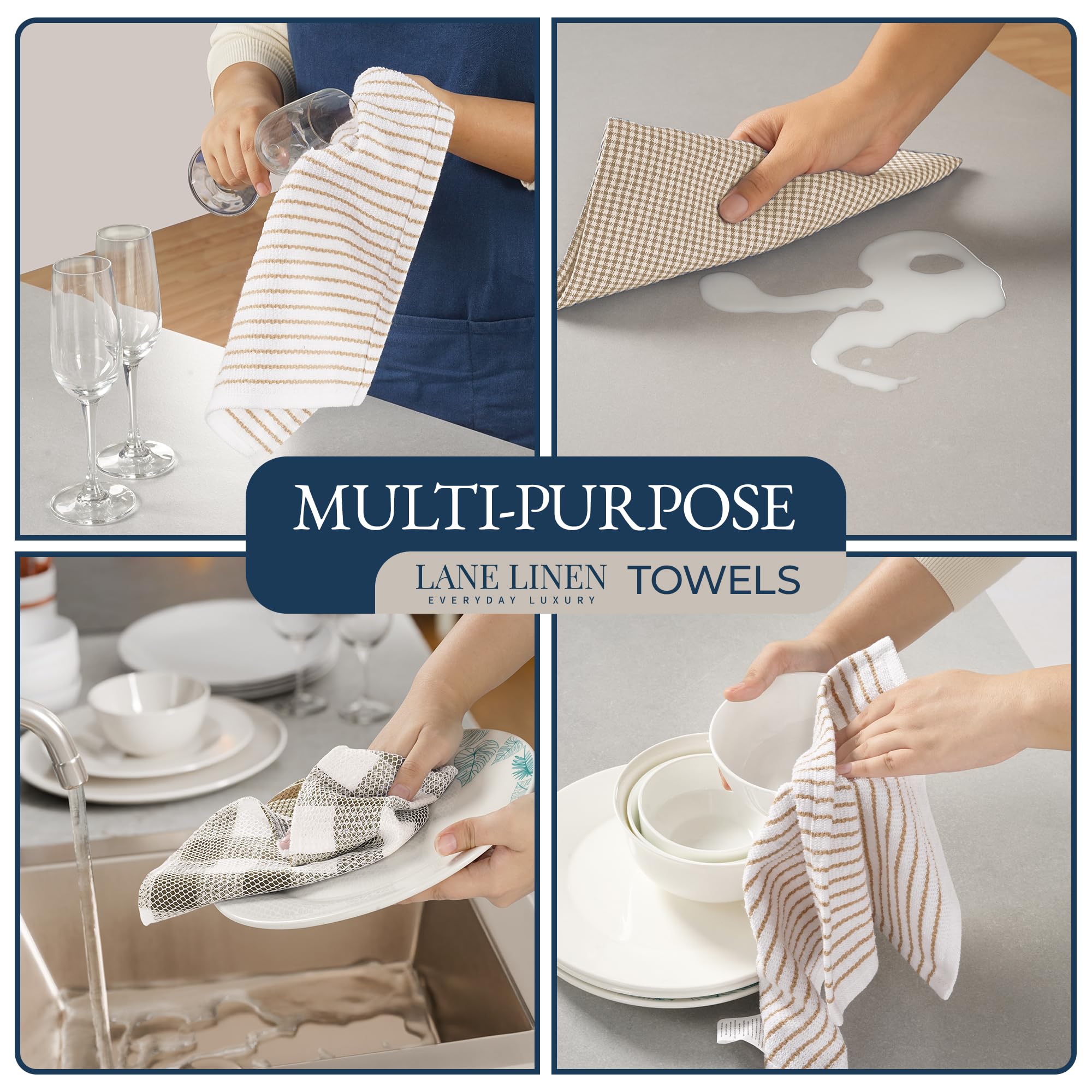 Soft and Absorbent Dishtowels: Our kitchen cleaning towels are like a warm hug for your dishes – ultra-soft, super absorbent, and built to last. Say goodbye to soggy disasters! These dish towels for drying dishes are built to last, maintaining their premium feel and classic design even after hundreds of washes. Say goodbye to wasteful paper towels and hello to a sustainable, stylish kitchen!