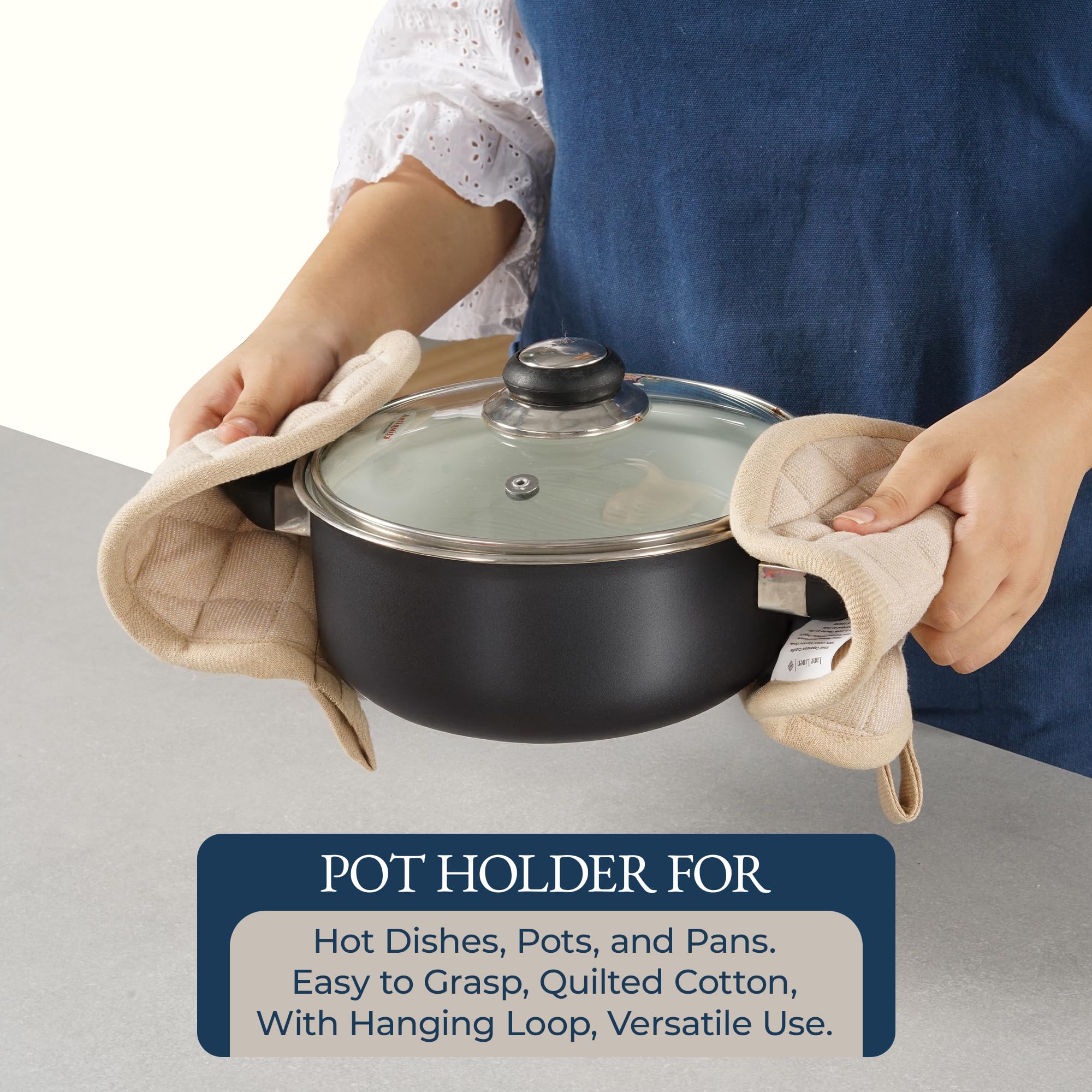 Heat-Resistant Heroes: Our oven mitts heat resistant and potholders, lined with quilted cotton, bravely withstand up to 350°F (177°C). No more screaming when you grab that hot pan! They ensure a firm grip, making it easy to handle hot dishes, pots, and pans safely and comfortably. Plus, they add a touch of style to your kitchen decor!