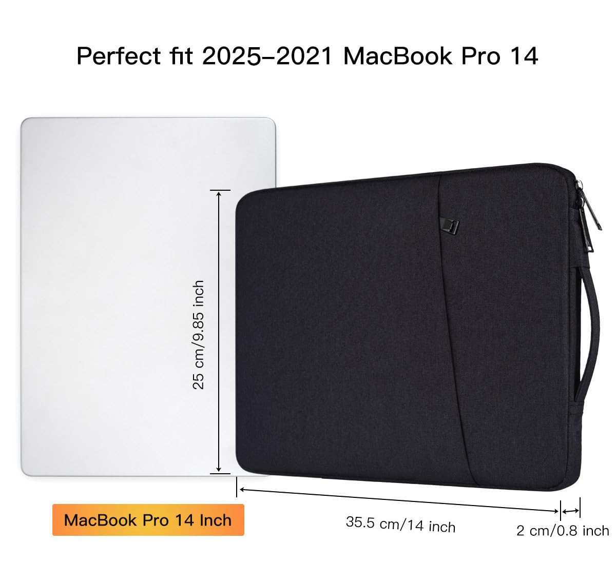 【Size & Compatible】The laptop sleeve perfectly fits: 2026 14 inch MacBook Pro M5 A3426 A3427, 2025 14 inch MacBook Pro M5 A3434, 14 inch New M4 Pro Max A3112 A3401 A3185, MacBook Pro M3 Pro Max/ M3 M2 M1 Pro Max A2992 A2918 A2779 A2442 2023-2021 with Hard Shell Case; Also Fit 13.5 inch Surface Laptop 5/4/3/2/1,Surface Book 3/2/1, Internal Dimensions - 13.41" x 9.25" x 0.81".