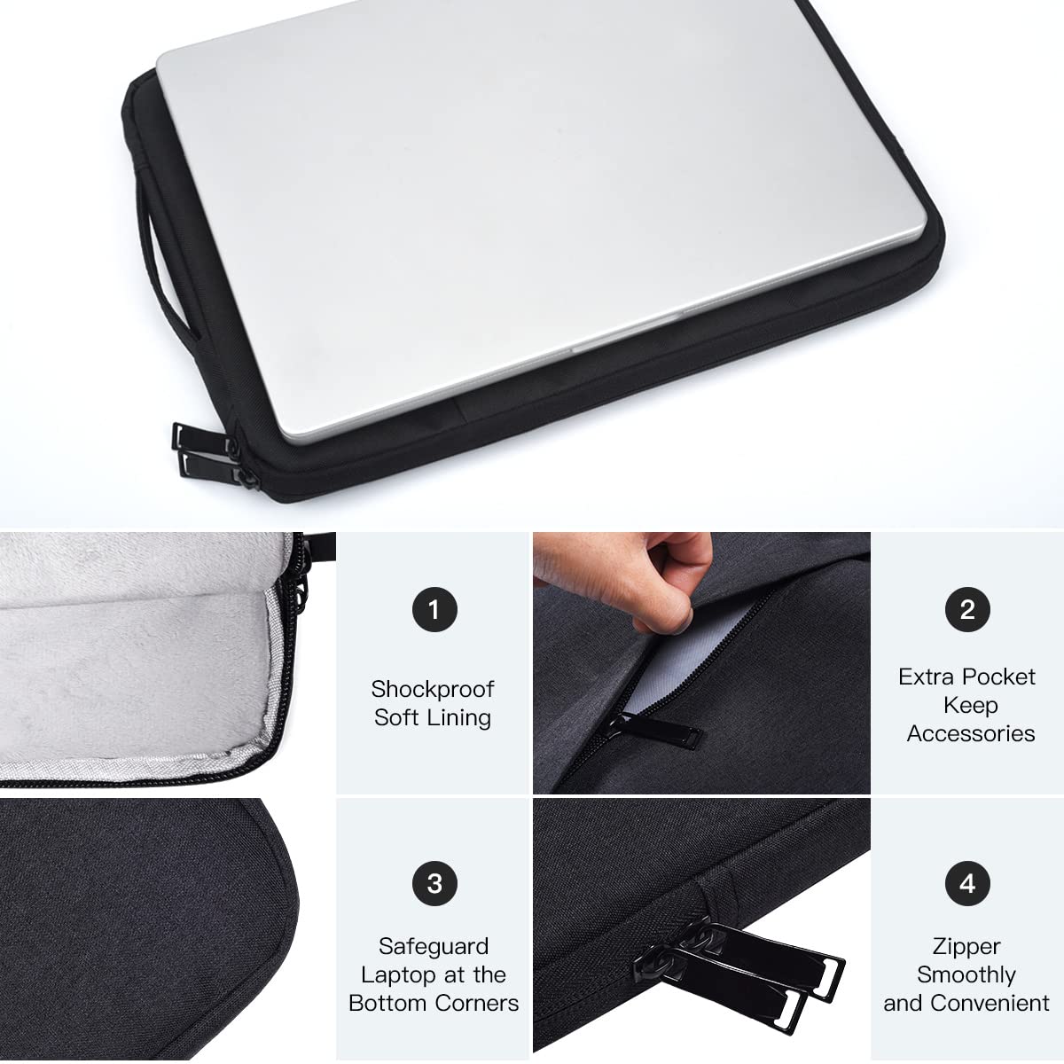 【Extra Pocket & Smoothly Zipper】Extra pocket in front provides enough space to keep mouse, earphones, pens, iPhone , notepads and other accessories. Zipper glides smoothly and convenient access to your laptops.