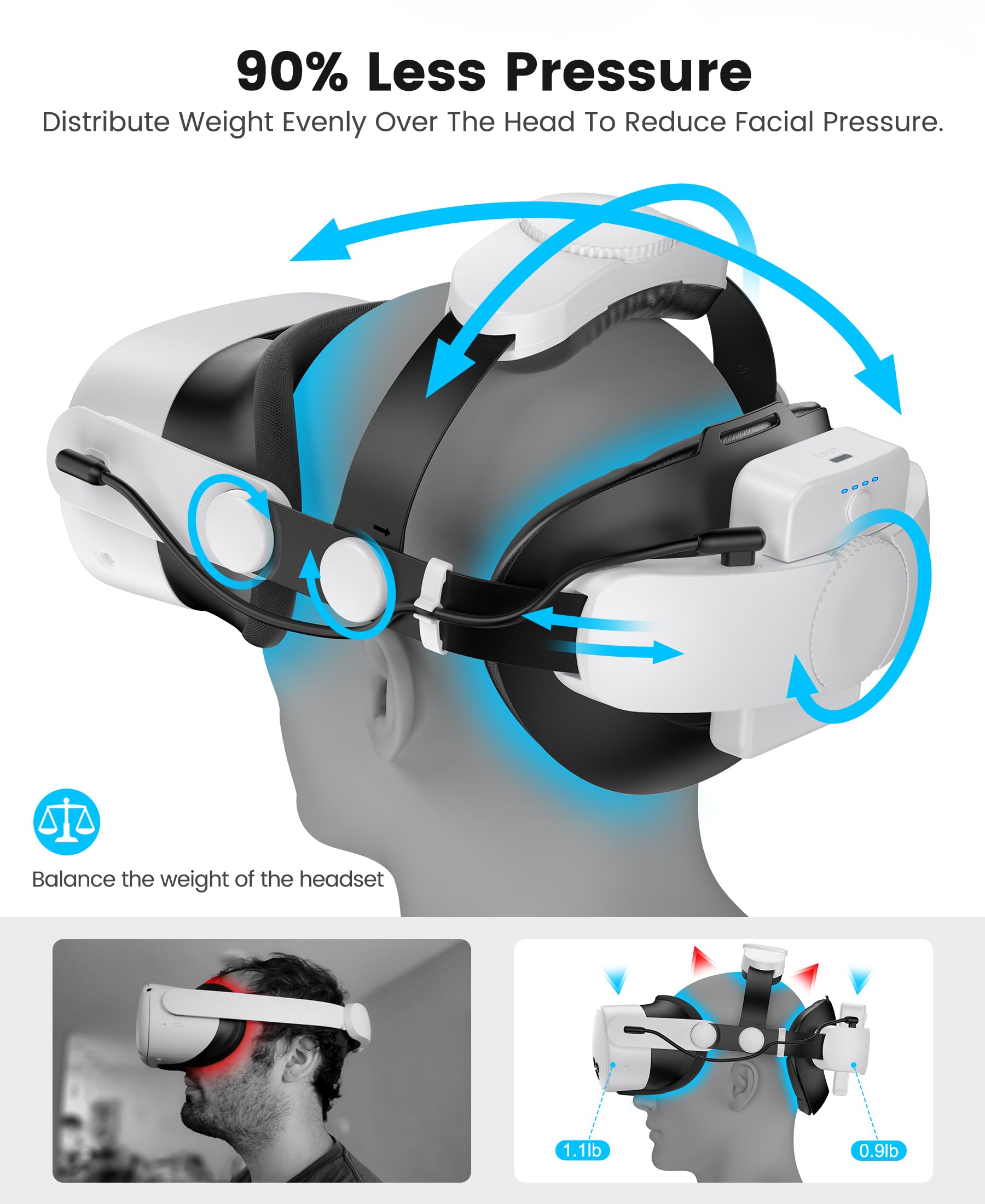 【Adjustable Elite Strap for All Head Sizes】Features dual adjustment knobs (top and rear) for easy, precise sizing—perfect for both adults and kids. The top strap rotates 180° for a custom fit, shifting weight off your face and onto the back of your head, enabling longer, more comfortable gameplay.