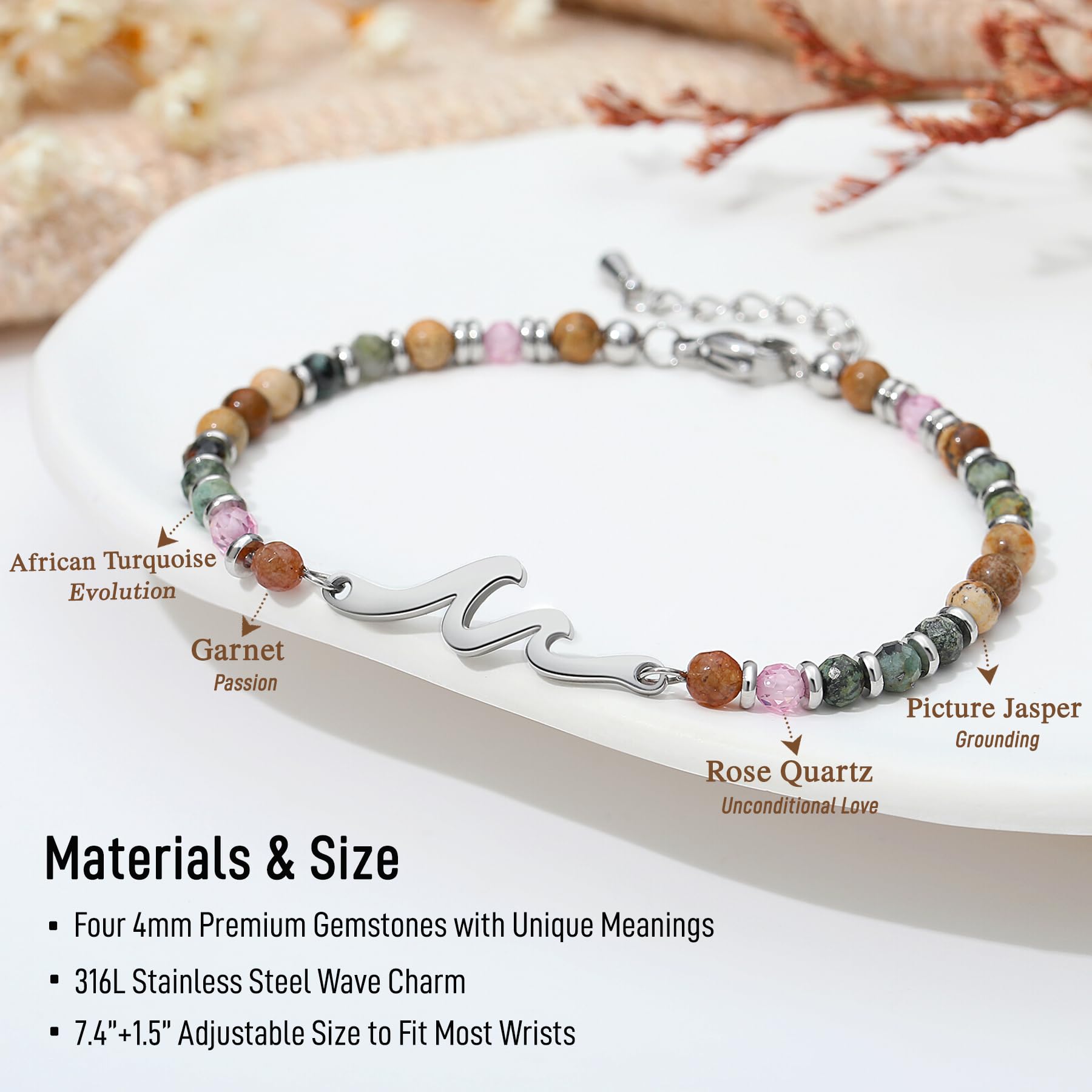 【 Premium Quality & Adjustable Size 】Crafted for comfort and durability, this 7.4" beaded wave bracelet for women features a 1.5" extension chain for an adjustable fit ( 6.5"-8" wrists). Handmade with 4mm colorful natural stones and hypoallergenic 316L stainless steel beads, it's lightweight, tarnish-resistant, and designed for everyday wear - just like a mother’s love.