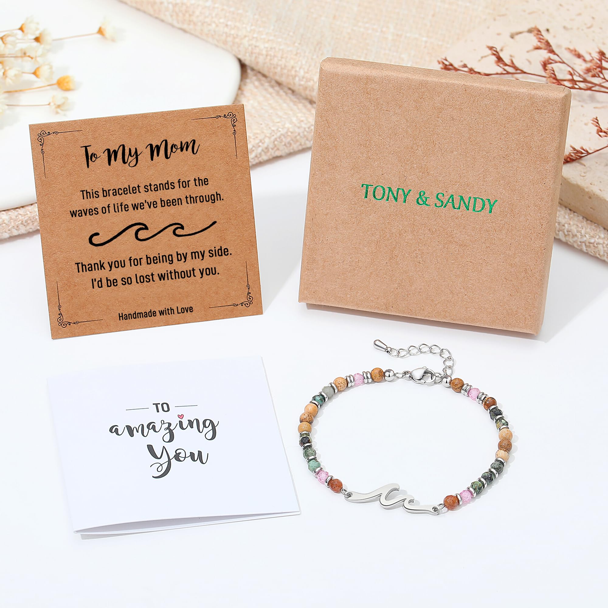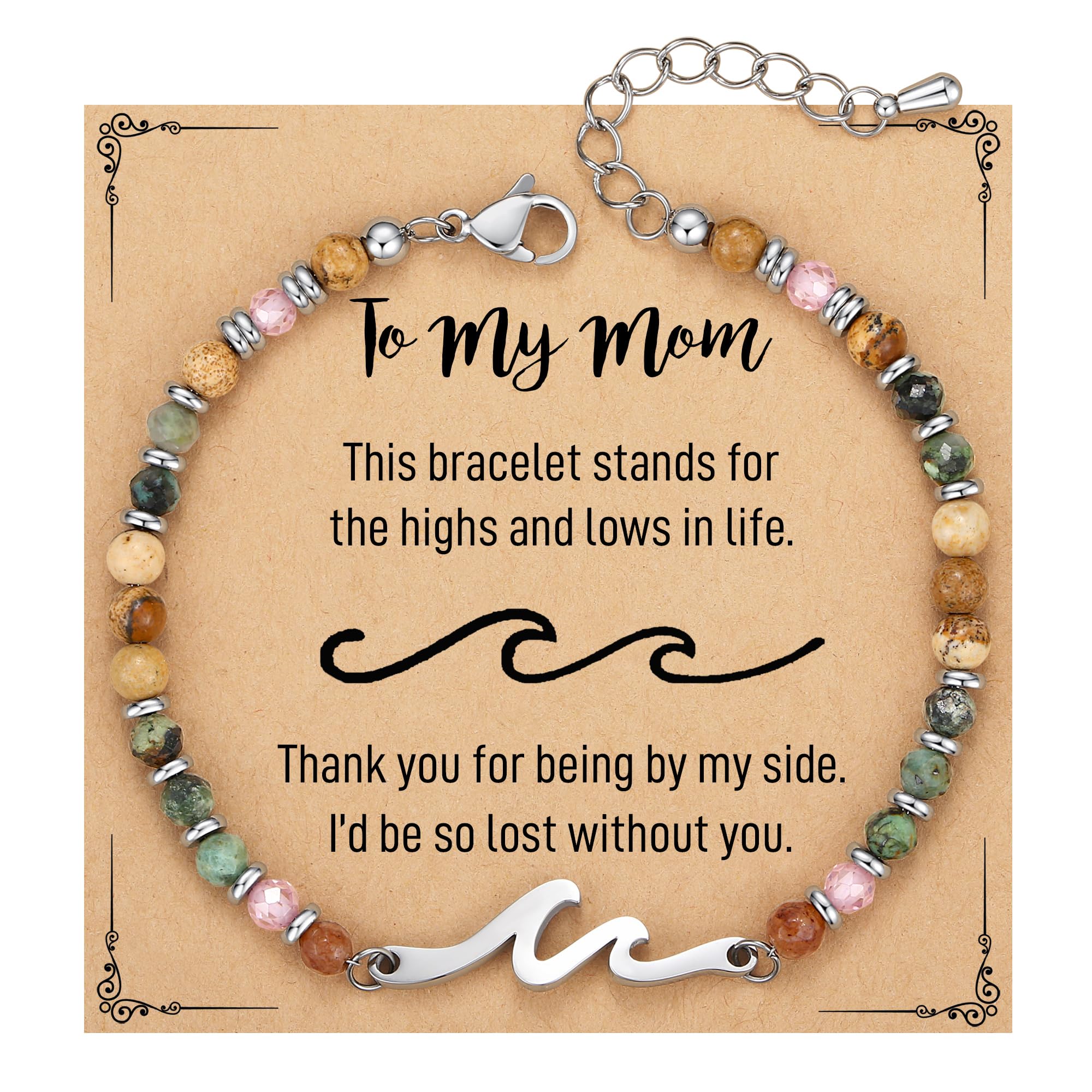 【 Mom Bracelets for Women 】This beautifully designed wave bracelet captures the enduring journey of motherhood. "It symbolizes life's ups and downs, and I'll stand by you through every wave." Each curve represents challenges faced together, while the earthy-toned beads embody strength and heartfelt joy. A perfect gift for mom on Mother's Day, her birthday, Christmas, anniversaries, or simply to show your love and appreciation.