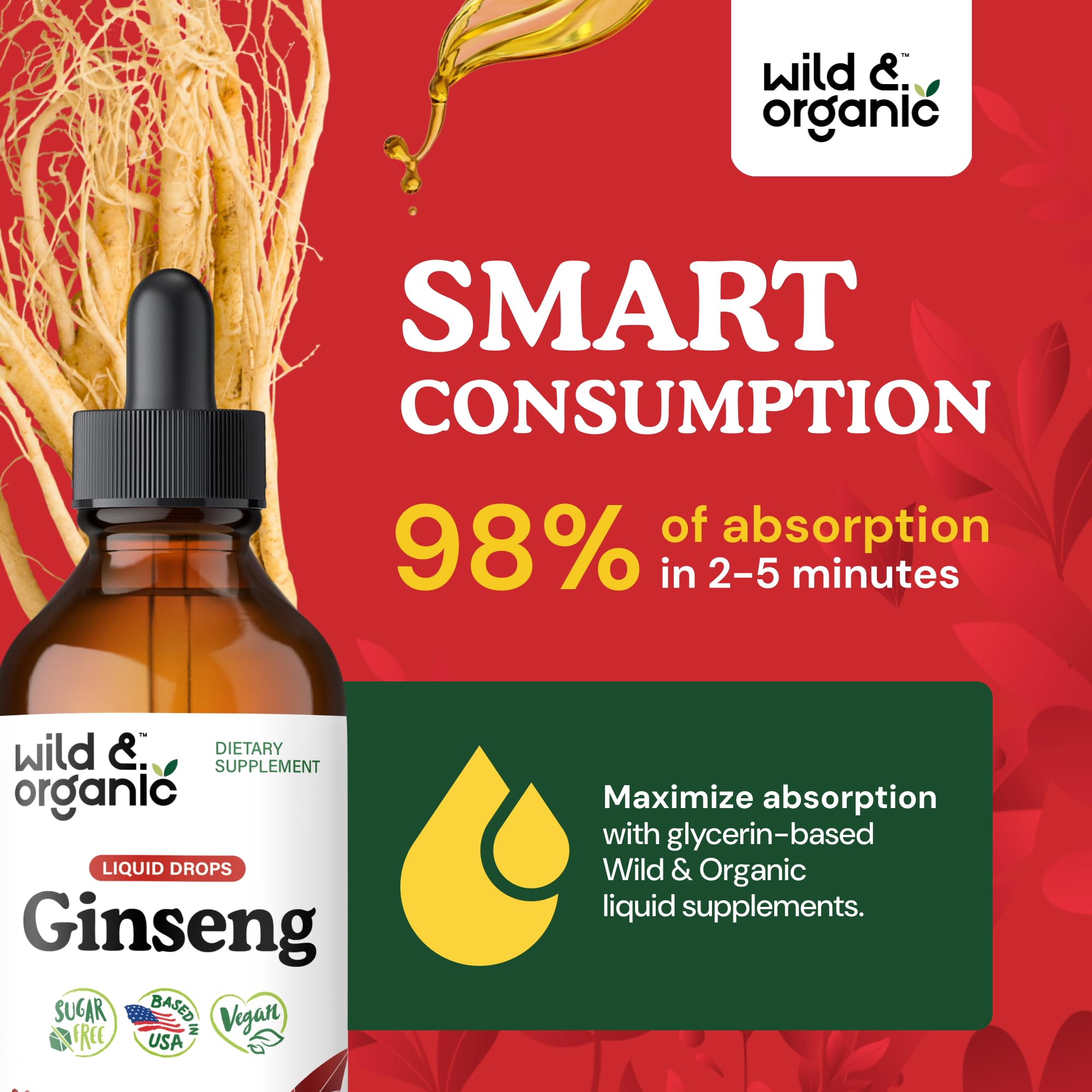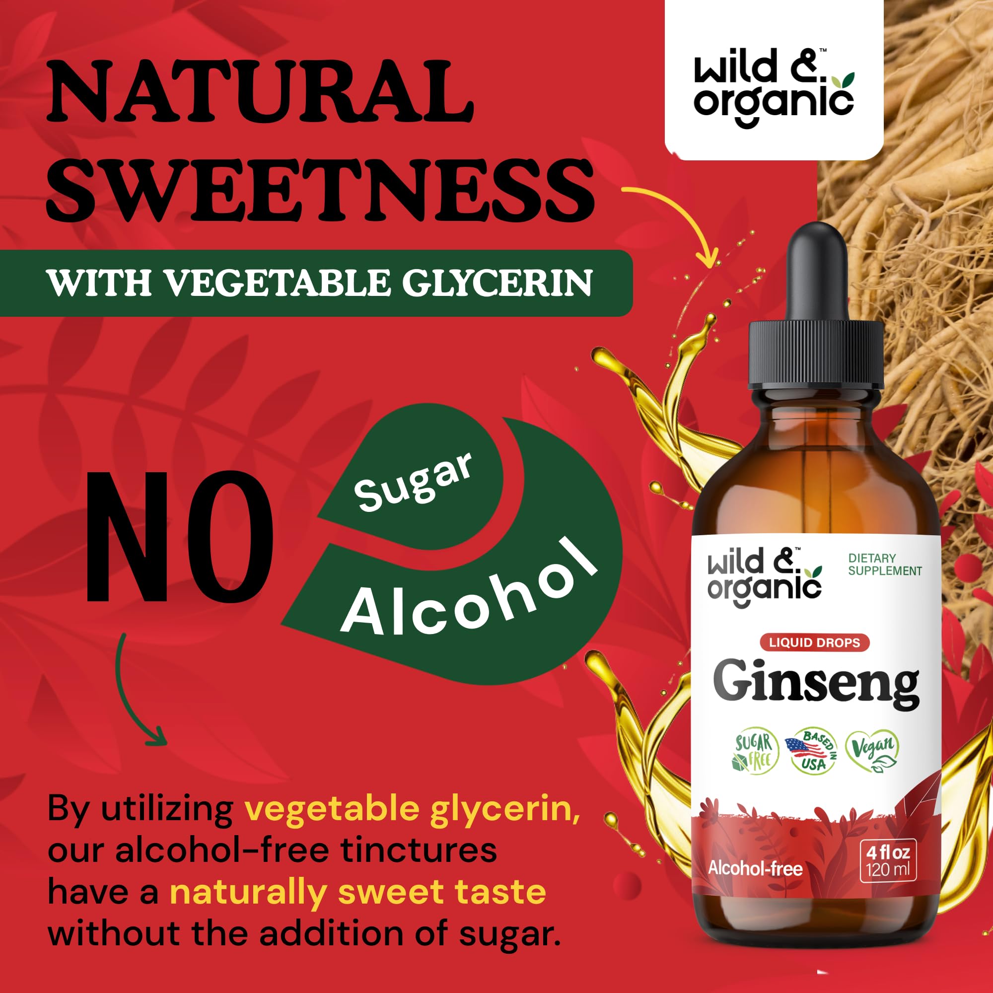 Alcohol-Free: Wild & Organic ginseng panax supplement is vegetable glycerin-based, providing an alcohol-free tincture that is easy on digestion.