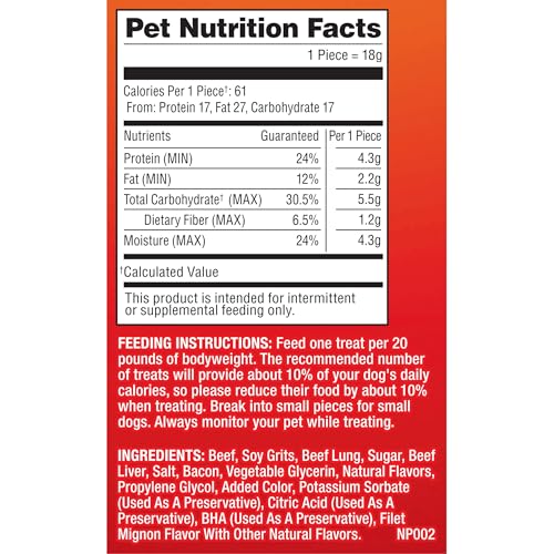 Contains one (1) 22.5 oz. bag of Pup-Peroni Filet Mignon & Bacon Flavor soft dog treats