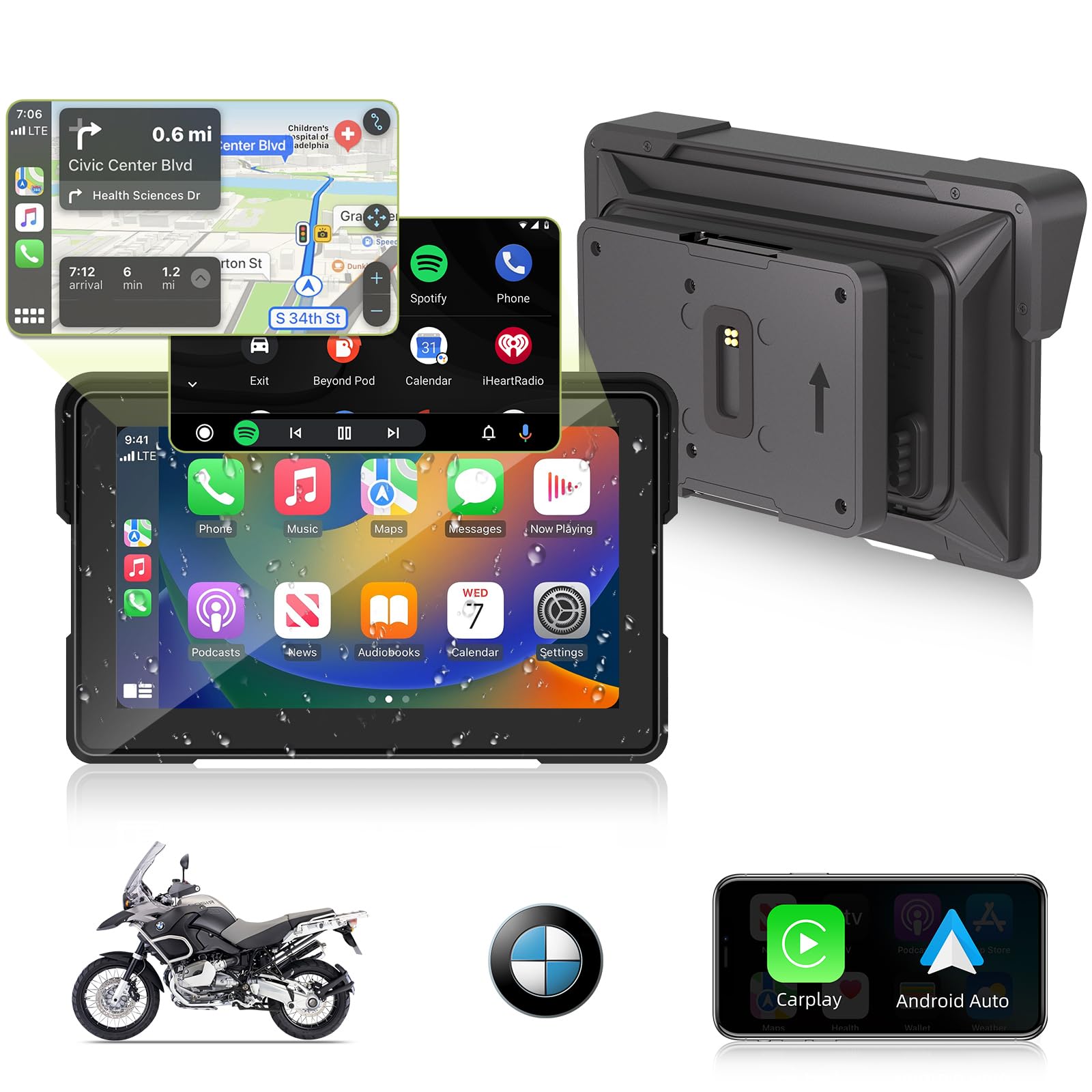 【IP67 Waterproof and Anti - glare Design - Built for the Road 】Want to ride worry - free in any weather? Our carplay para moto is IP67 waterproof and works great in High or low temperatures. No need to worry about different environments! And with the anti - glare design, when the sun is shining directly, the sun visor prevents screen glare, so you can see the route clearly