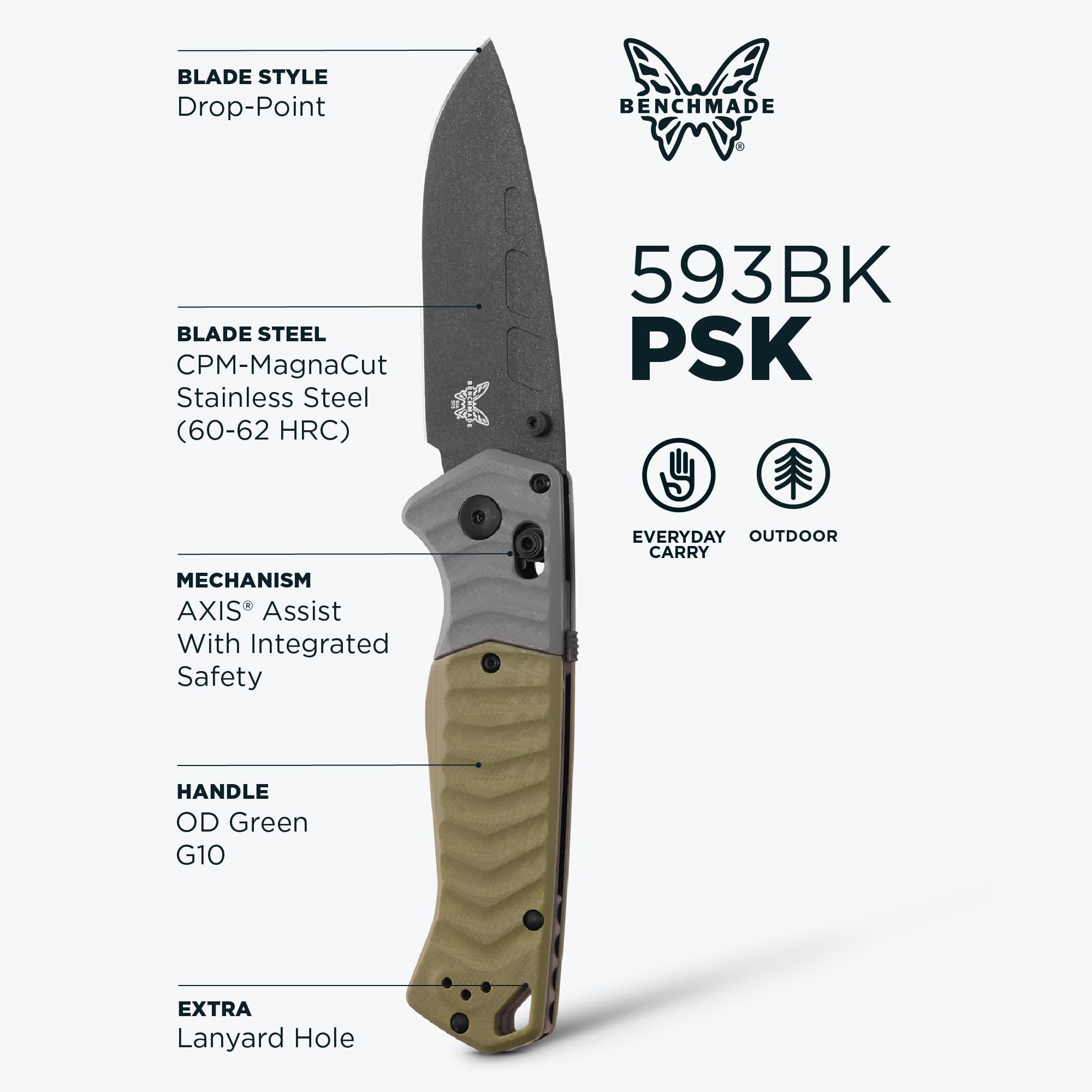 Benchmade - PSK Folding Knife with Gray & OD Green G10 Handle (593BK)