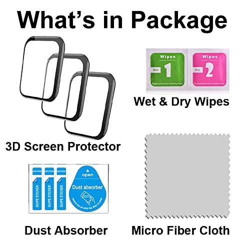 Package includes: 3 3D Screen protectors, 3 dry wet wipes, 3 dust removal stickers, 1 micro fiber cloth, 1 squeegee, 1 foam ring sticker, 1 instruction card for DIY
