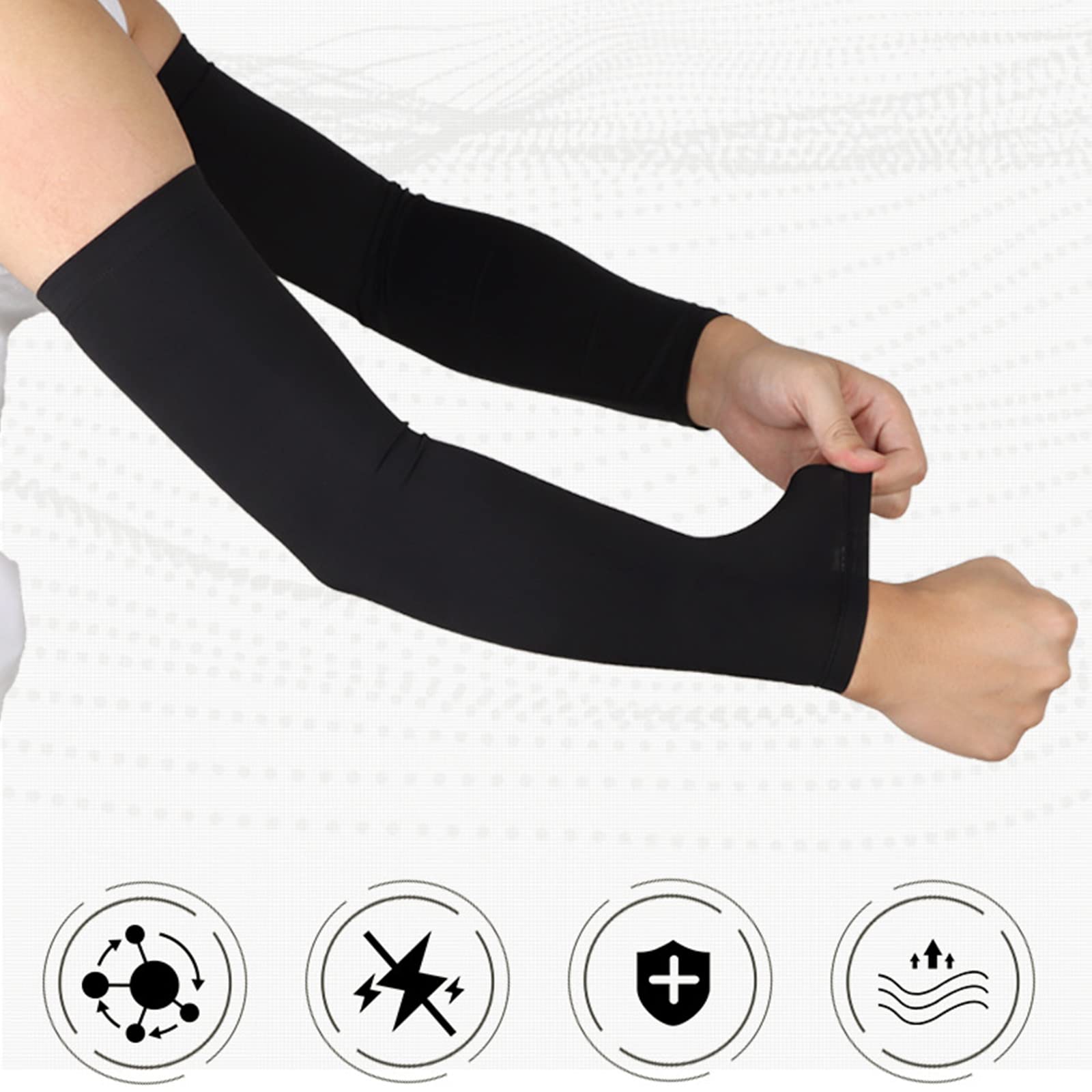 Atneato Arm Sleeves made of polyester, Keeps You Warm in Cold Temperatures & Cool in Hotter Temperatures.