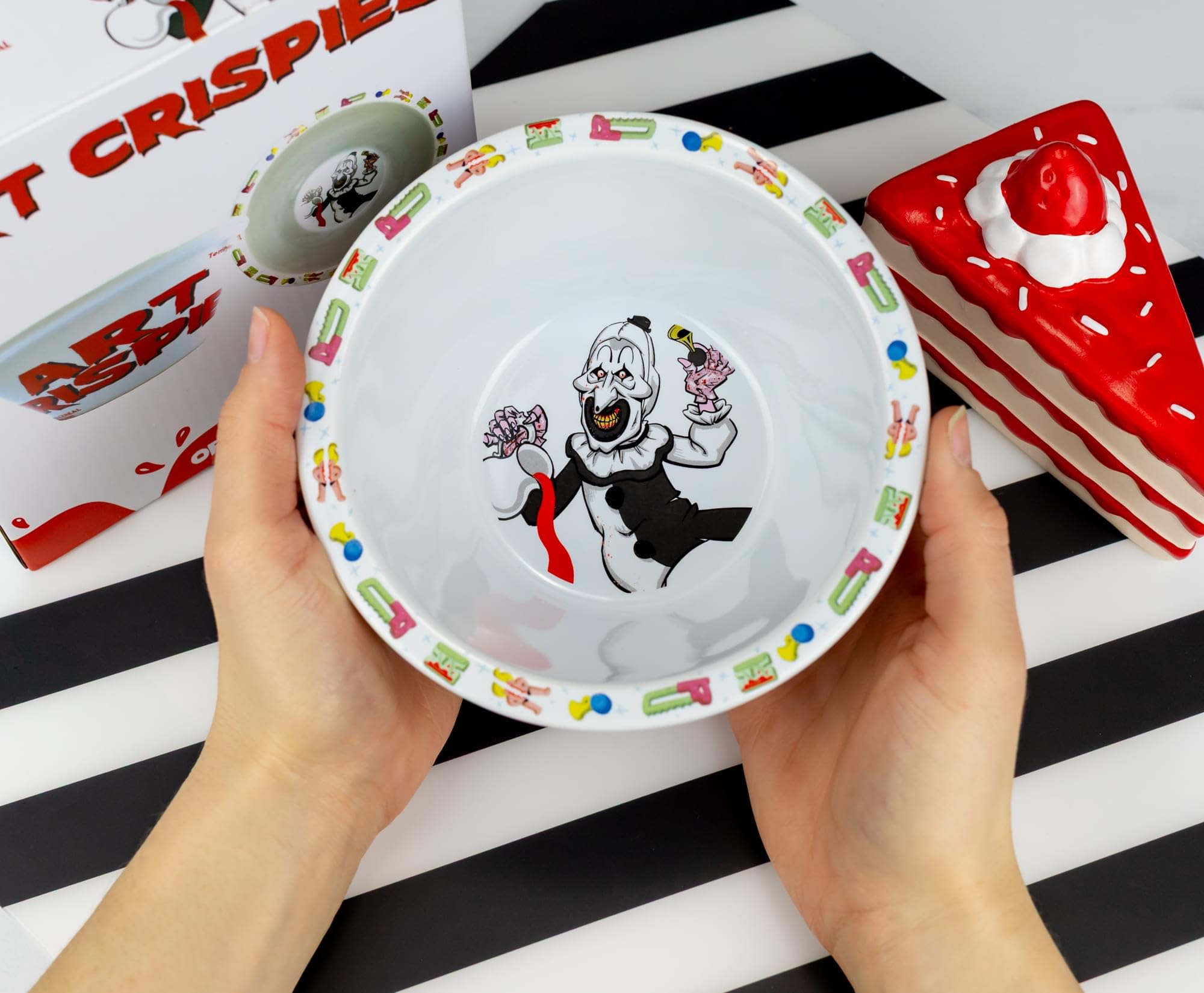 OFFICIAL TERRIFIER COLLECTIBLE: Feed your killer cravings with this officially licensed Art Crispies cereal bowl from the twisted world of Damien Leone's Terrifier franchise. Cereal not included.