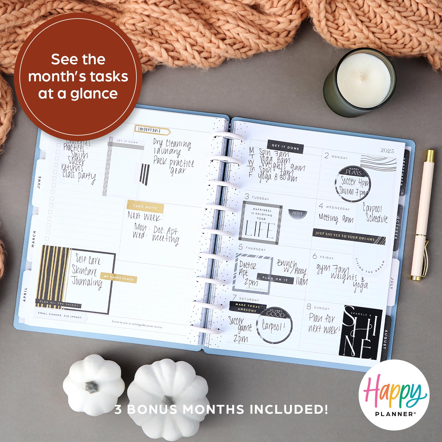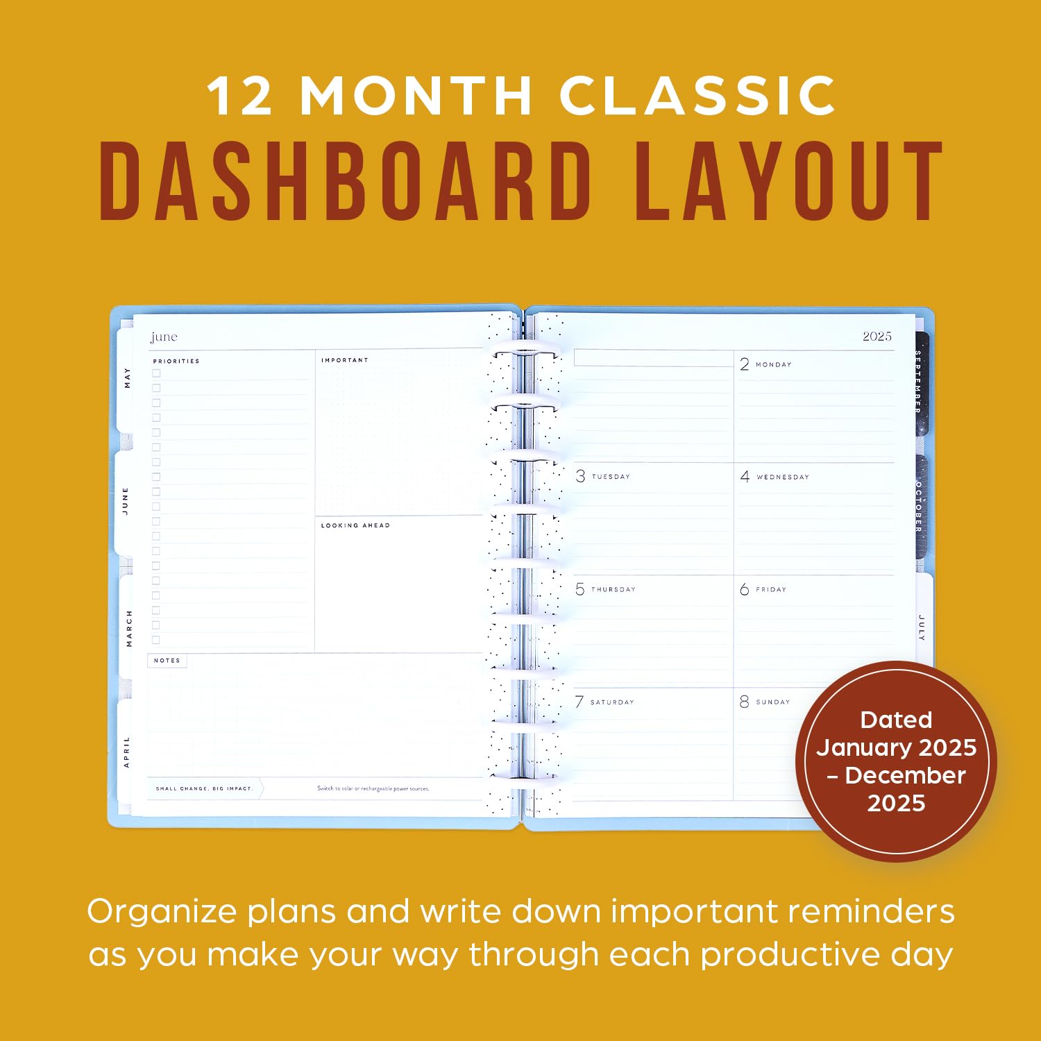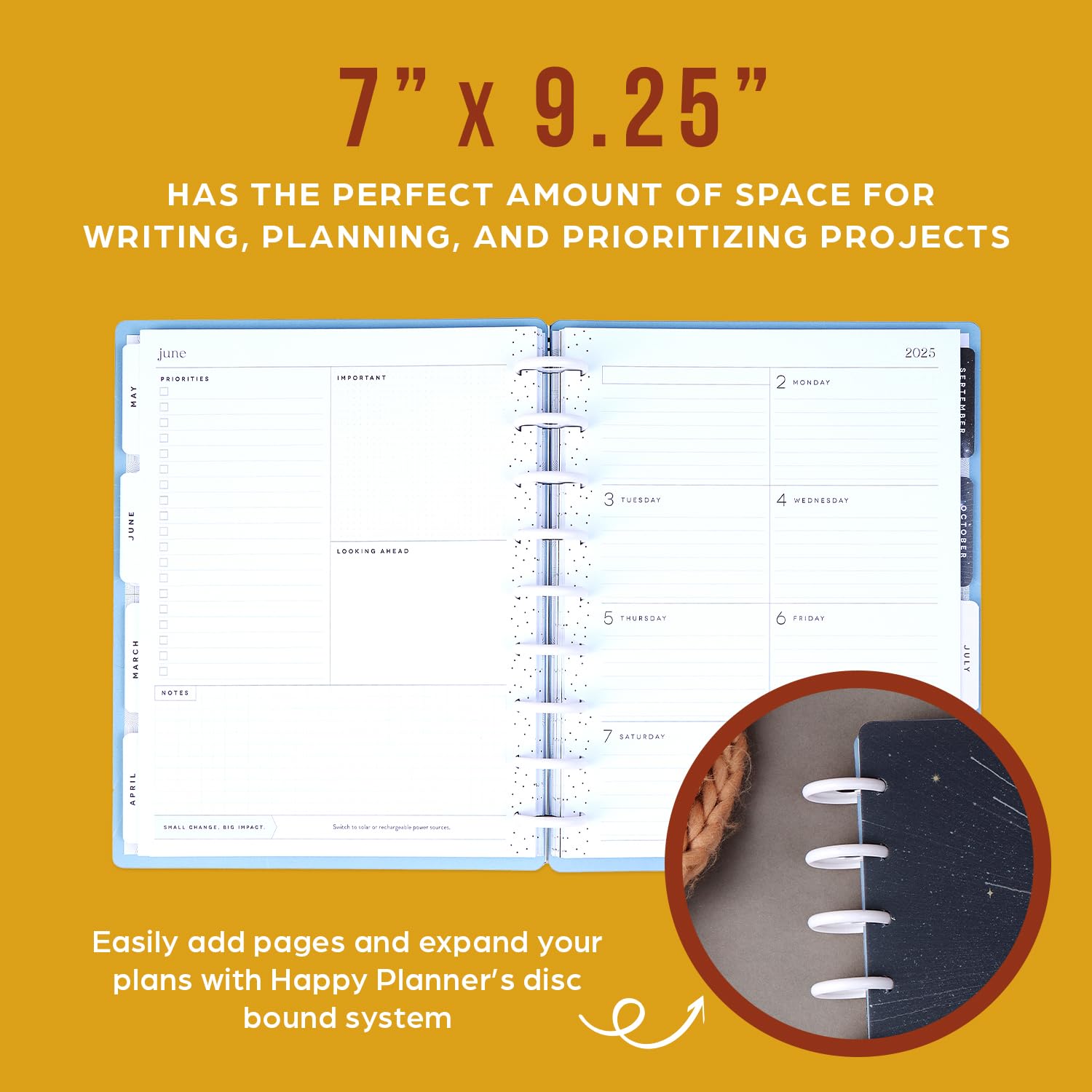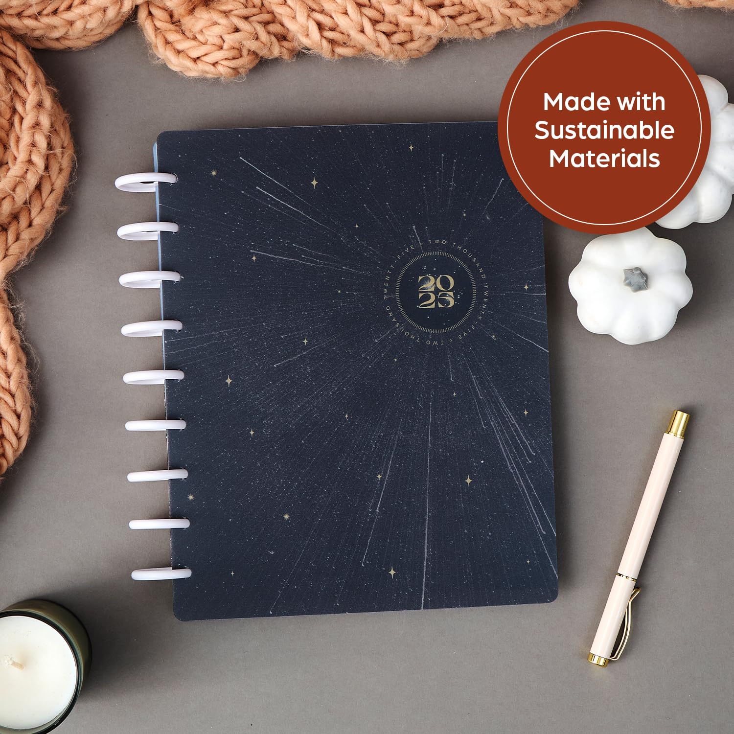 Happy Planner Sustainable Disc-Bound 12-Month Daily, Weekly, and Monthly Planner, Jan.–Dec. 2025, Classic Size, Dashboard Layout, Linear Galaxy, 72 Pages, 12 Dividers, 2 Sticker Sheets, 7" x 9.25"