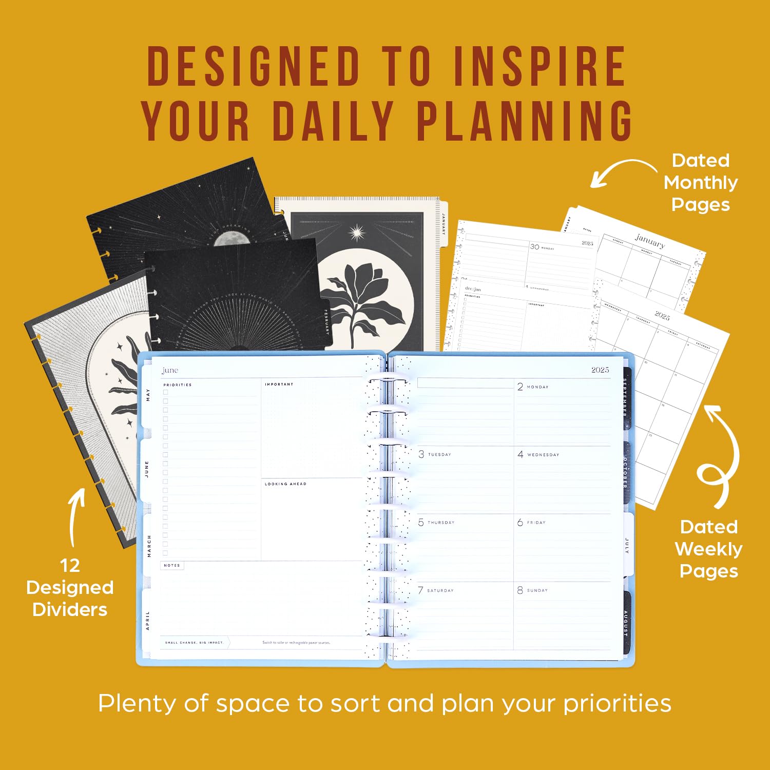 2025 PLANNER: Our classic-size planner is a classic for a reason! It has the perfect amount of space for writing, planning, and prioritizing projects. This 2025 daily planner features botanical and starry designs with black-and-white color themes. Carry it on your commute to school or work to always have your plans on hand.
