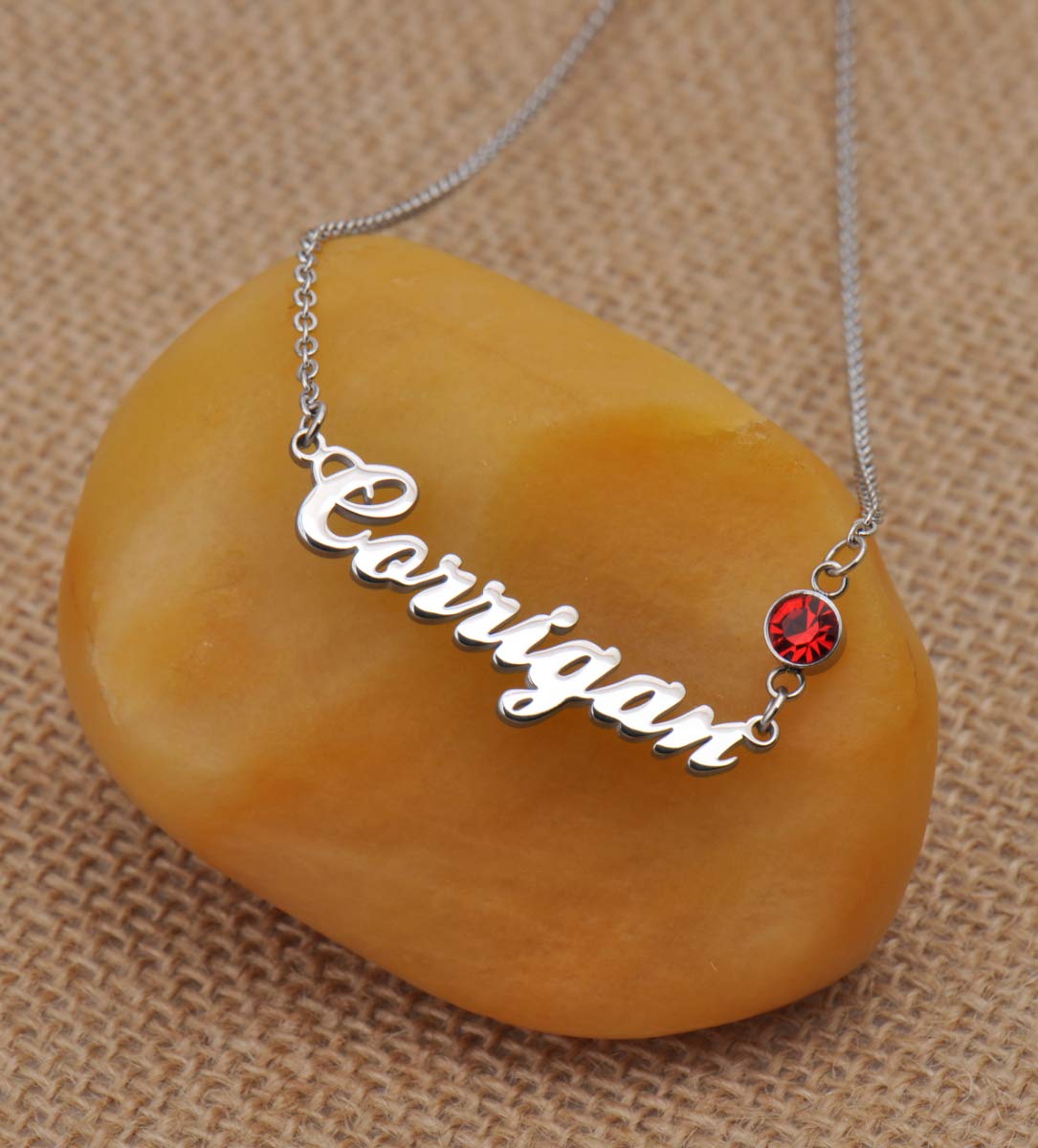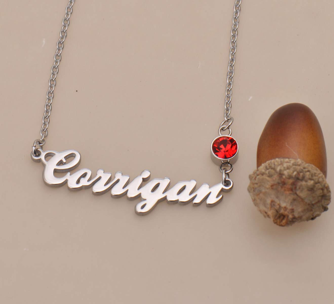 Custom single birthstone name necklace for women at any gift giving occasion like Mother's Day, Christmas, Valentine's Day, Thanksgiving Day, Birthday, Anniversary. Engagement, Birthday, Wedding Celebration