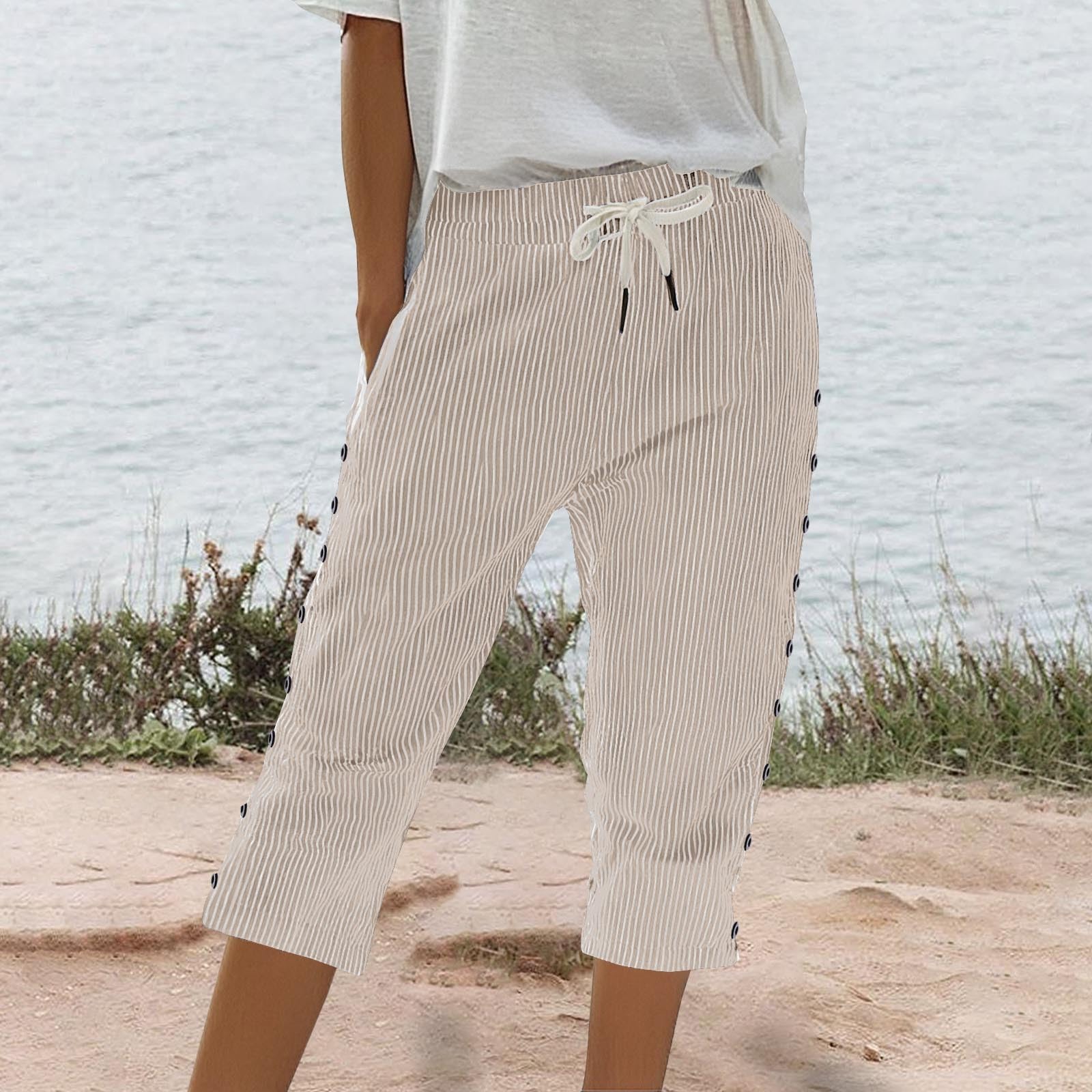 Feature: Cotton linen pants for women, tapered pants, ninth pants, high waist, button, solid color, loose comfortable fit, two side pockets. wide leg, lounge wear, capris petite. Suitable to wear for spring and summer and fall