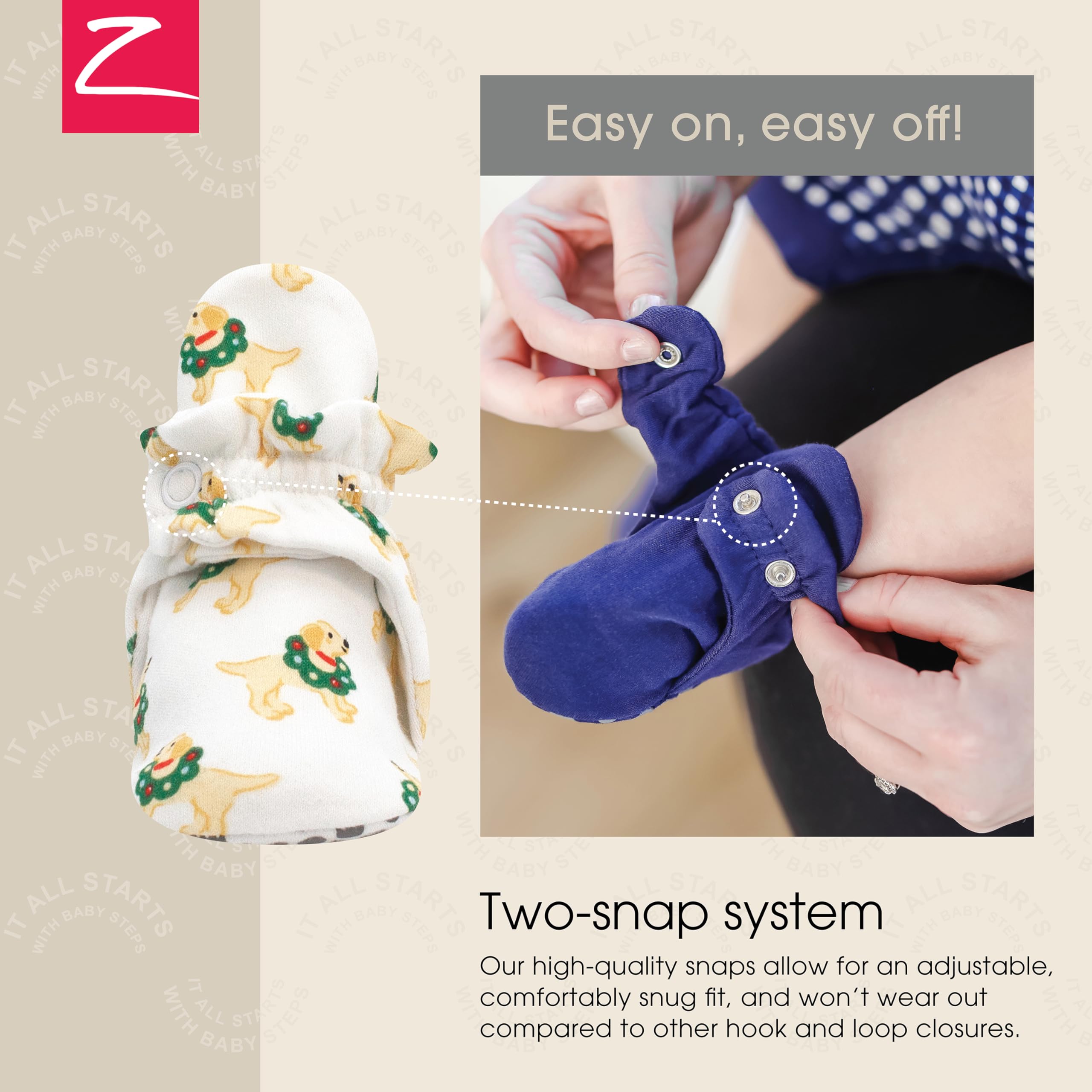 BABY BOOTIES THAT STAY ON: Our secure two-snap booties with rubber grippers stay on your little one’s feet with a comfy fit. The ideal baby shoes for crawling on the floor or kicking in a stroller, these booties won’t get lost like baby socks as your little one plays.