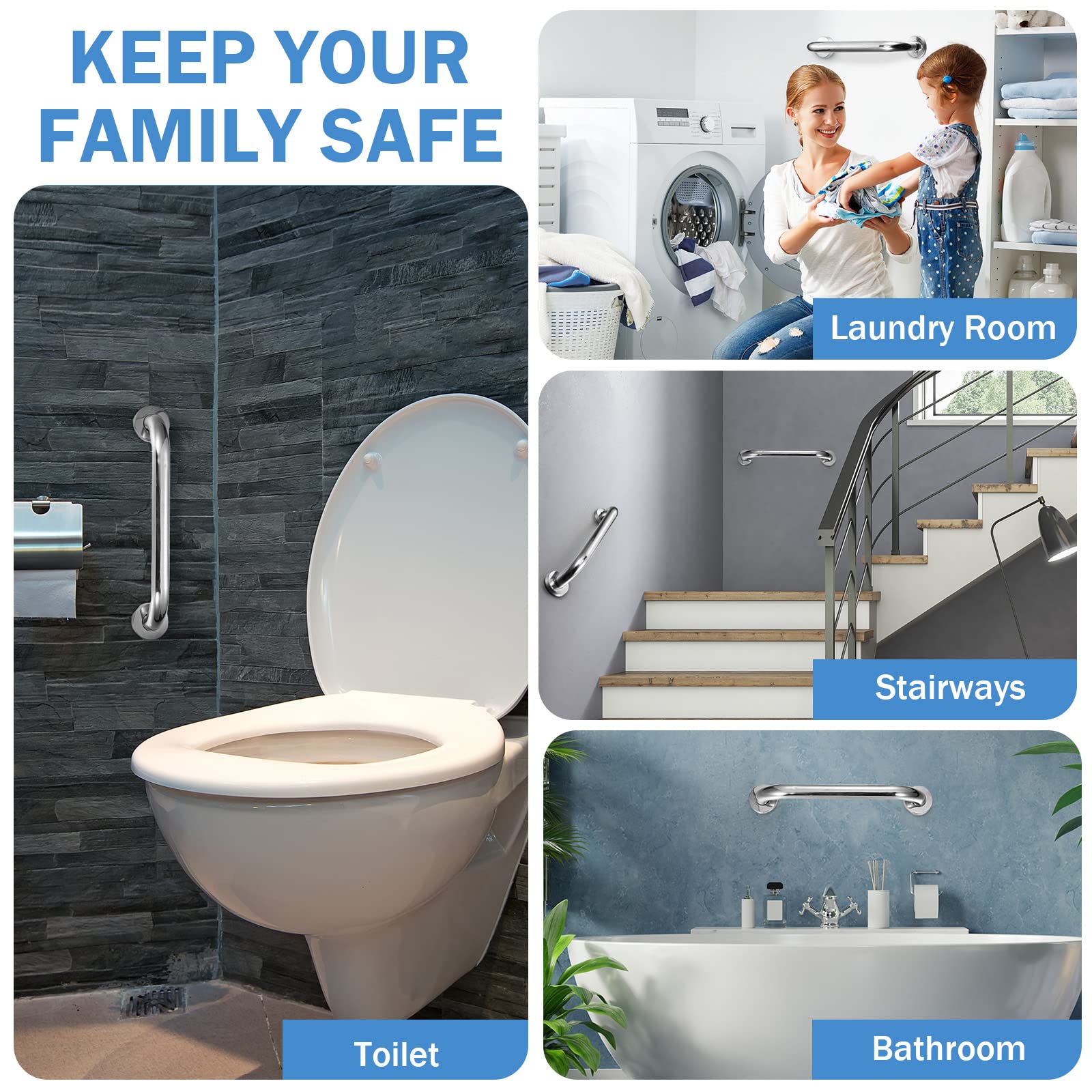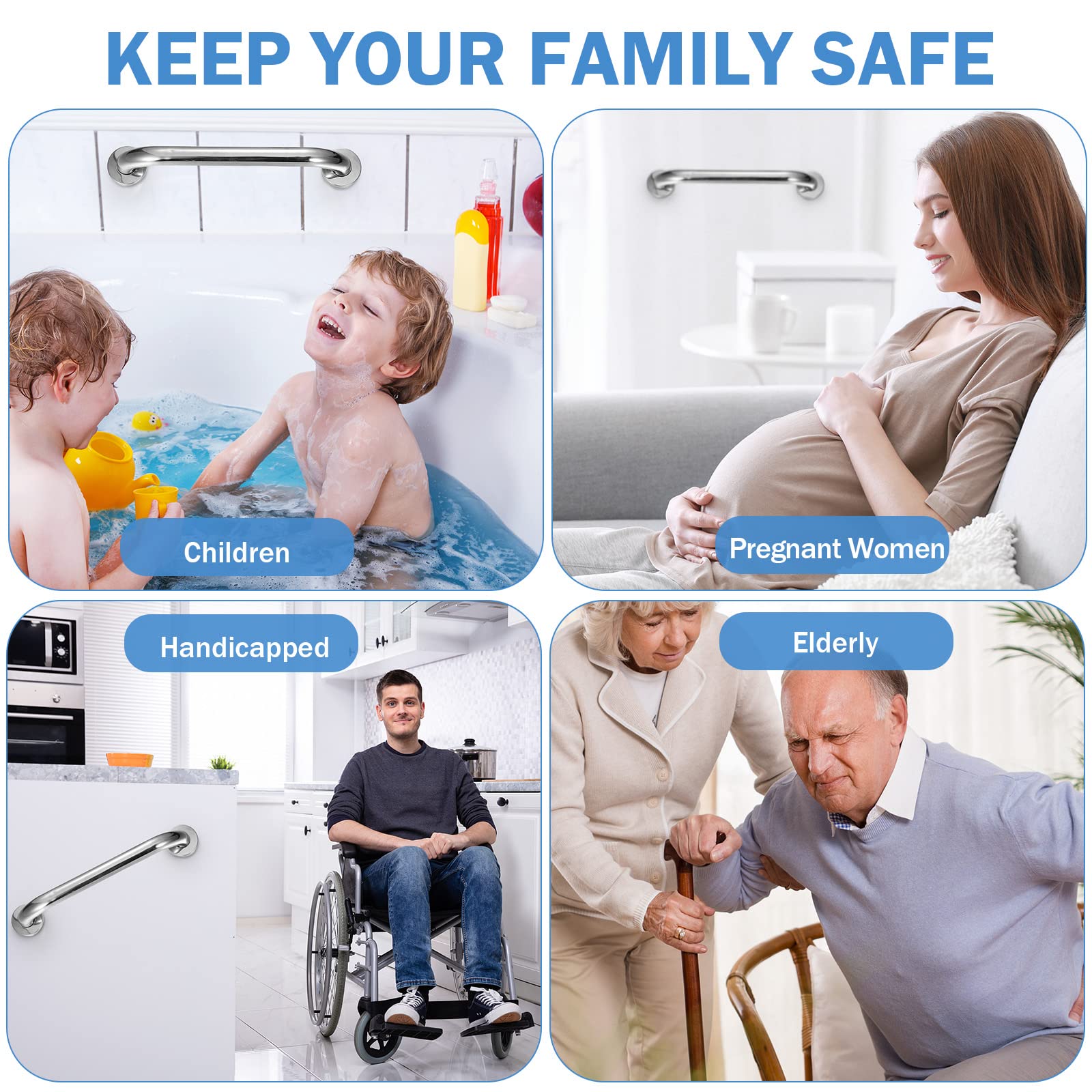 Long Service Life: grab bars for elderly for wall is made of stainless steel, waterproof, rustproof and reliable for long term use, the shower handles can support up to nearly 500 lbs, useful and strong, which can prevent slips and avoid different sorts of injuries
