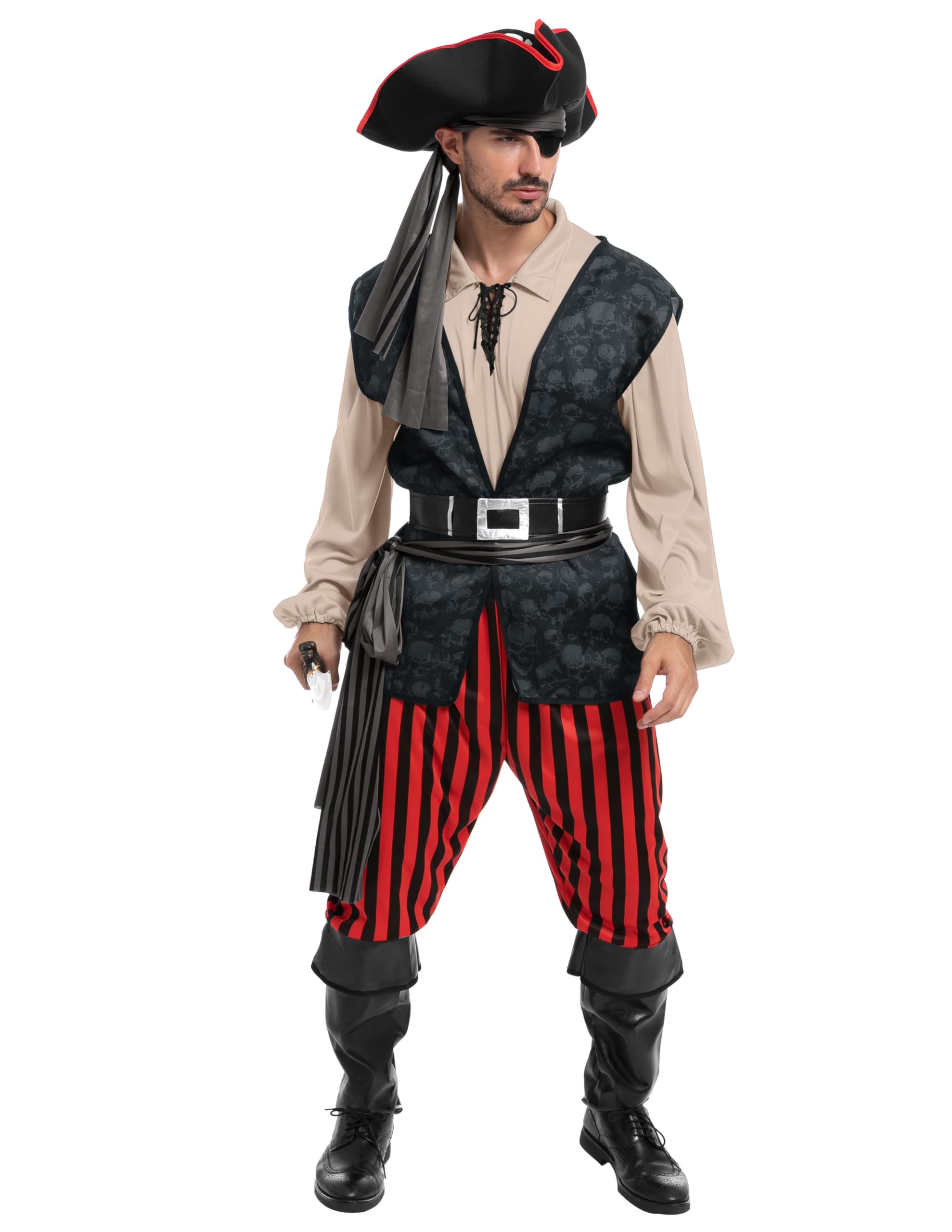 Versatile Occasions: Become a headturner this Halloween through this mens pirate costume. Great for Halloween dress up parties, festivals, theme party costumes, rum pirate costume, legend of pirate of seven seas, pirate buccaneer Halloween costume, trick or treat costume, play period everyday and More. Add lots of fun to your Halloween party and other theme activities
