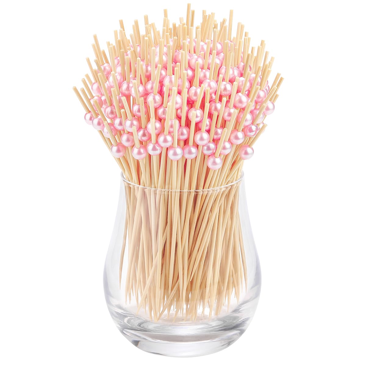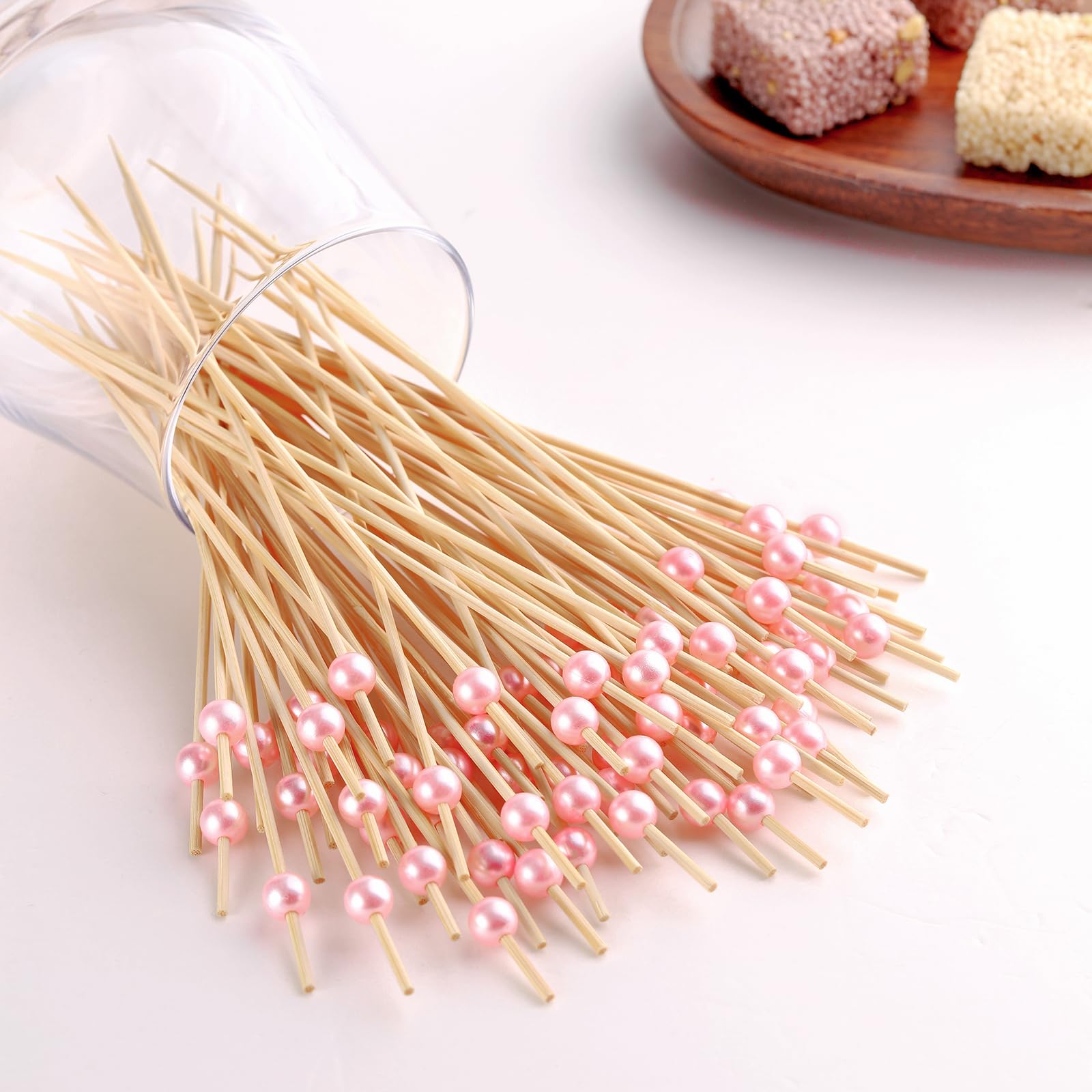 HIGH QUALITY MATERIAL - These cocktail picks are made of natural bamboo and plastic pink pearl. After grinding and high temperature fumigation, our bamboo picks are smoothly neat, burrs-free and safe for food skewering.