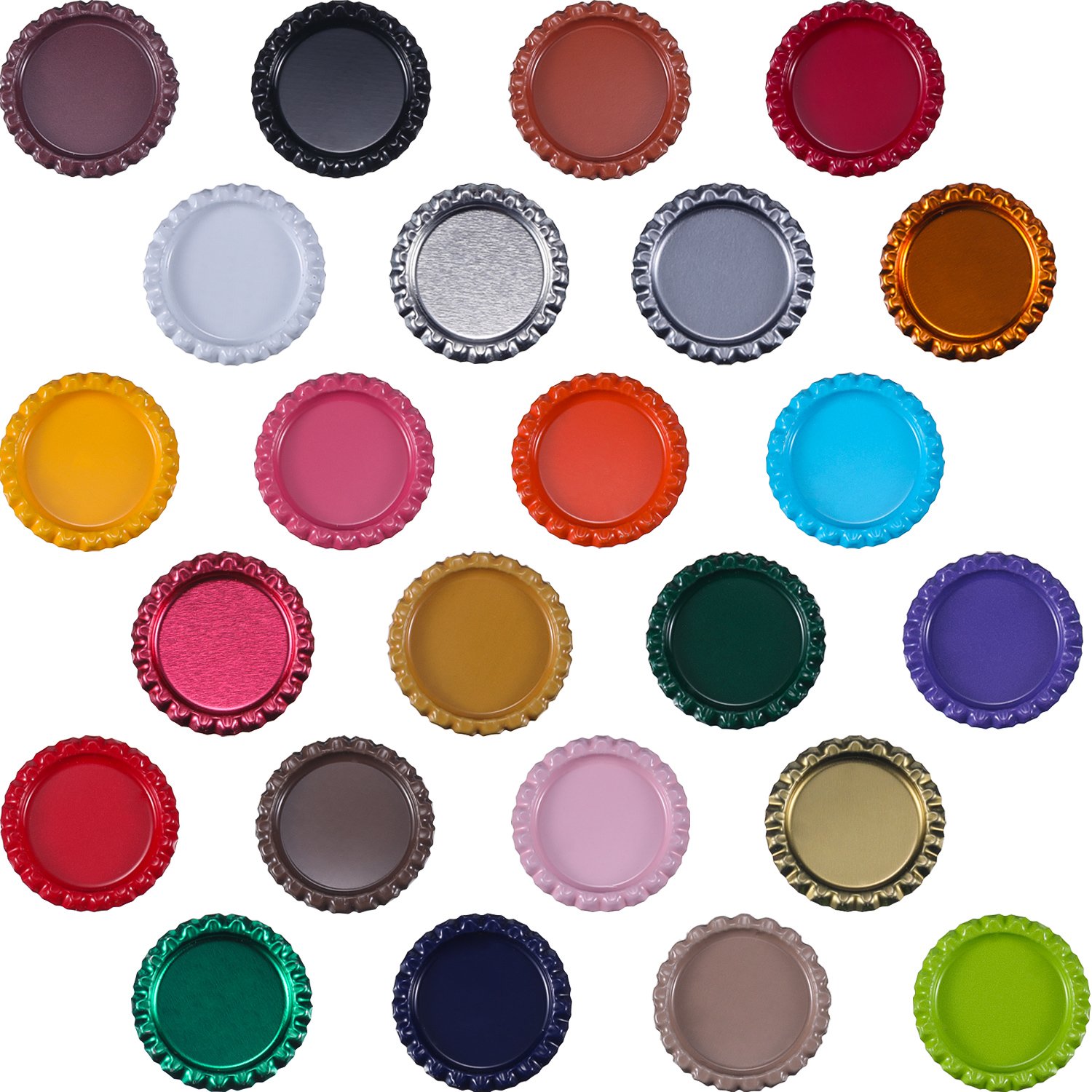 Bottle caps: about 1.3 inch in diameter, flattened and painted both sided, the rims of the bottle caps are smooth enough to be as pendants in your crafting bracelet or necklace