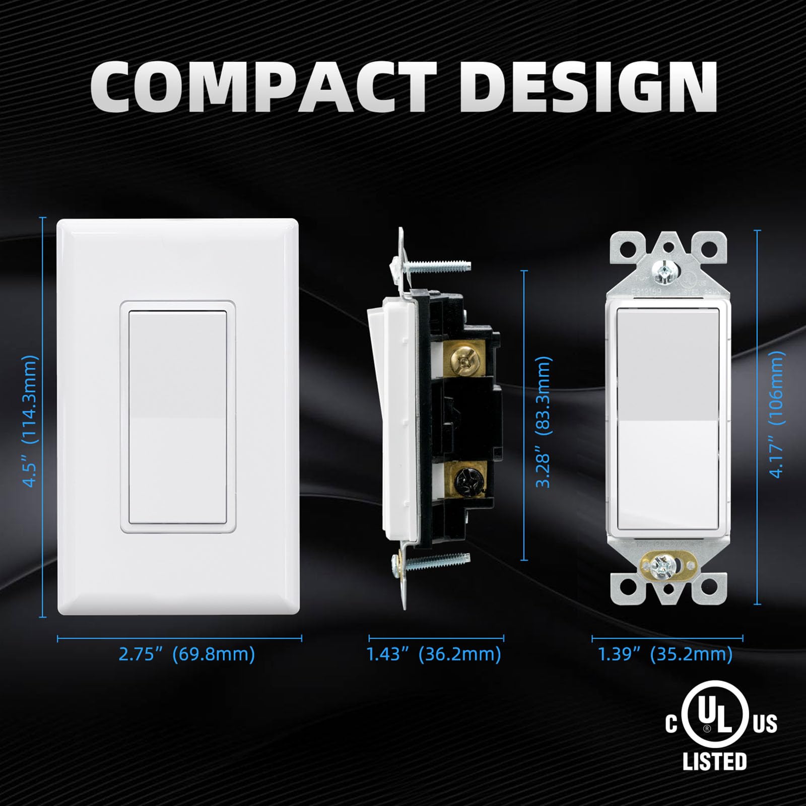 Universal Application: Suitable for residential use and most commercial areas that require only 15A switches. Repair or Replace old or broken rocker switches in your bedroom, kitchen or work space. UL & CUL listed.