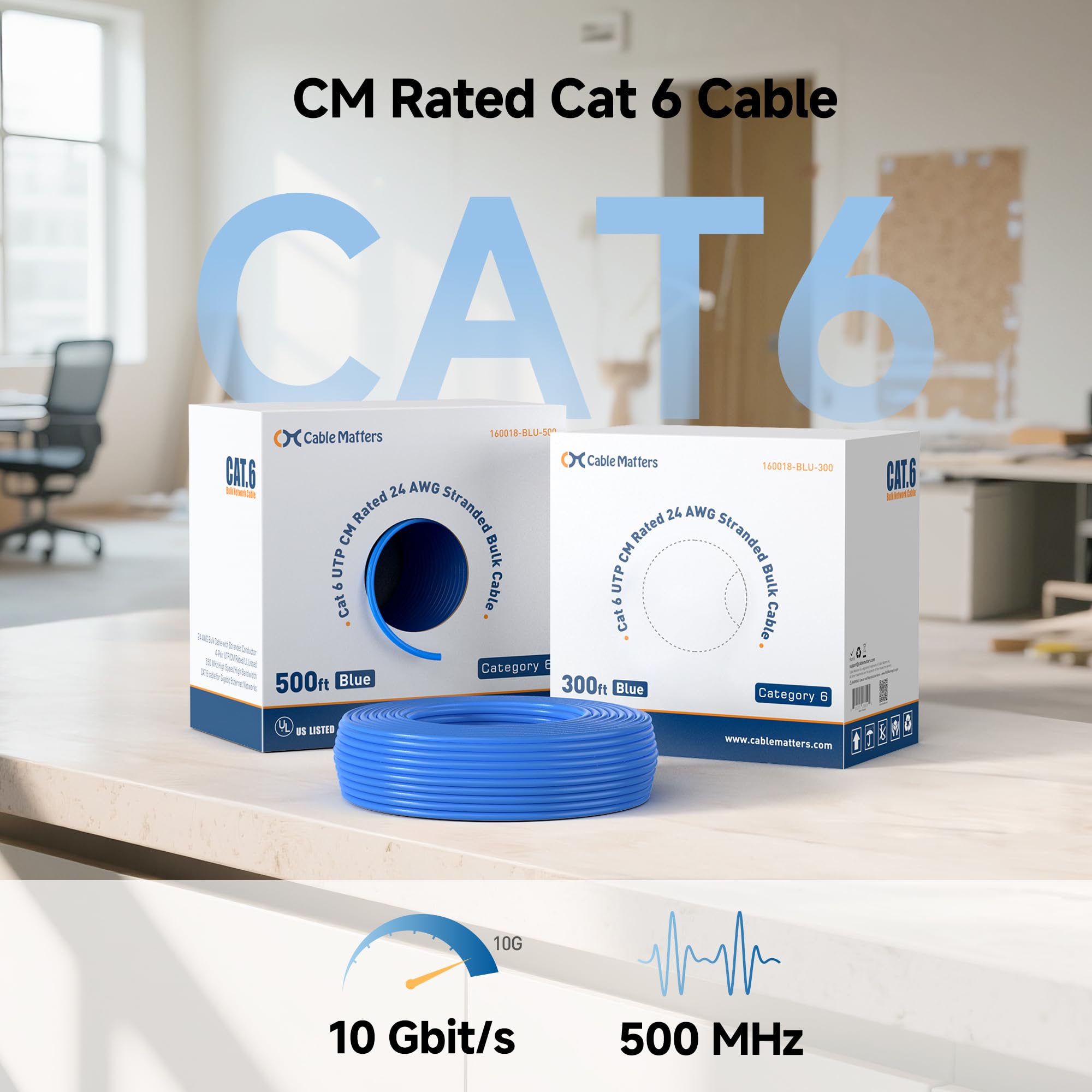 Premium Cat 6 Ethernet Cable 300ft: Our High Performance UL Listed (E178558) Cat6, 24 AWG, CM Rated, Stranded Ethernet Bulk Cable is the perfect solution for creating custom length network patch cables. Whether for a home setup or a large-scale network, this Cat6 cable 300ft spool is ideal for any application