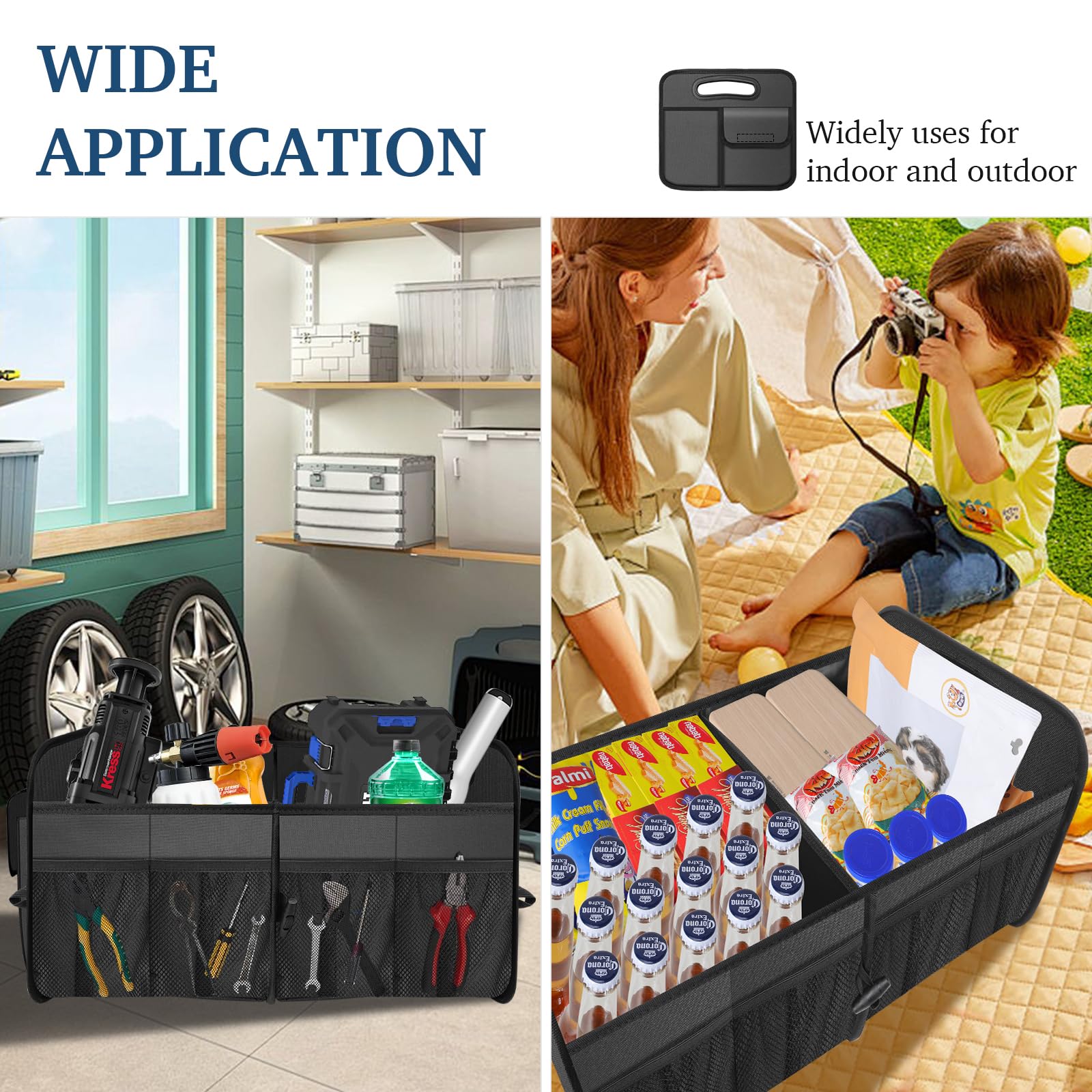 【Trunk Organizer for Car】:This is the optimal solution for maintaining a clean car interior as car accessories. Suitable for all vehicle types, like trucks, SUVs, vans, jeeps, cars, etc., and it's fantastic for transporting and arranging groceries, toys, athletic equipment, tools, and more in your trunk. Eliminate trunk clutter situation with this car organizer.