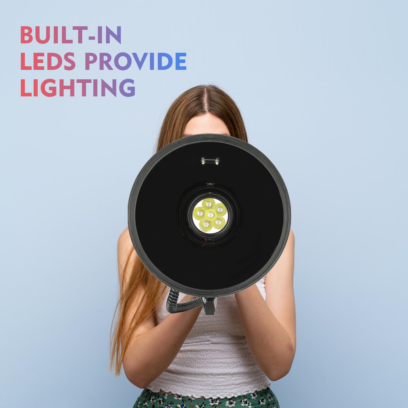 LED Mode: This mega phone built-in Led lamp. You can not only rely on its powerful sound to command a group of people, but also use its lighting function to attract everyone's attention In the dark.