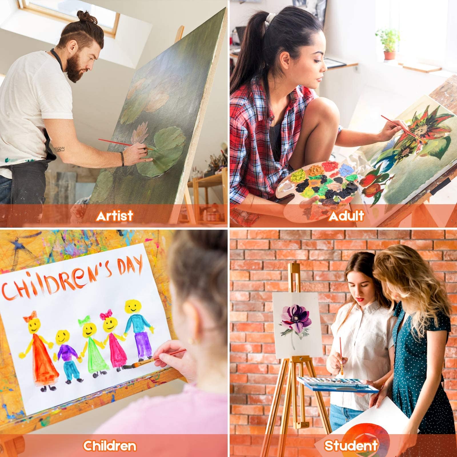 🌈Awesome Set of Paint brushes: Professional paint brushes can cover all of your needs. The multi-purposed brushes are ideal for Watercolor, Oil, Gouache, enamel, Acrylic Painting, Body, Nail, Face Painting, Miniature, Model, Wood, Glass, Cup, Ceramic, Fine work, Art class, Craft Art Painting, DIY Art Crafts etc.
