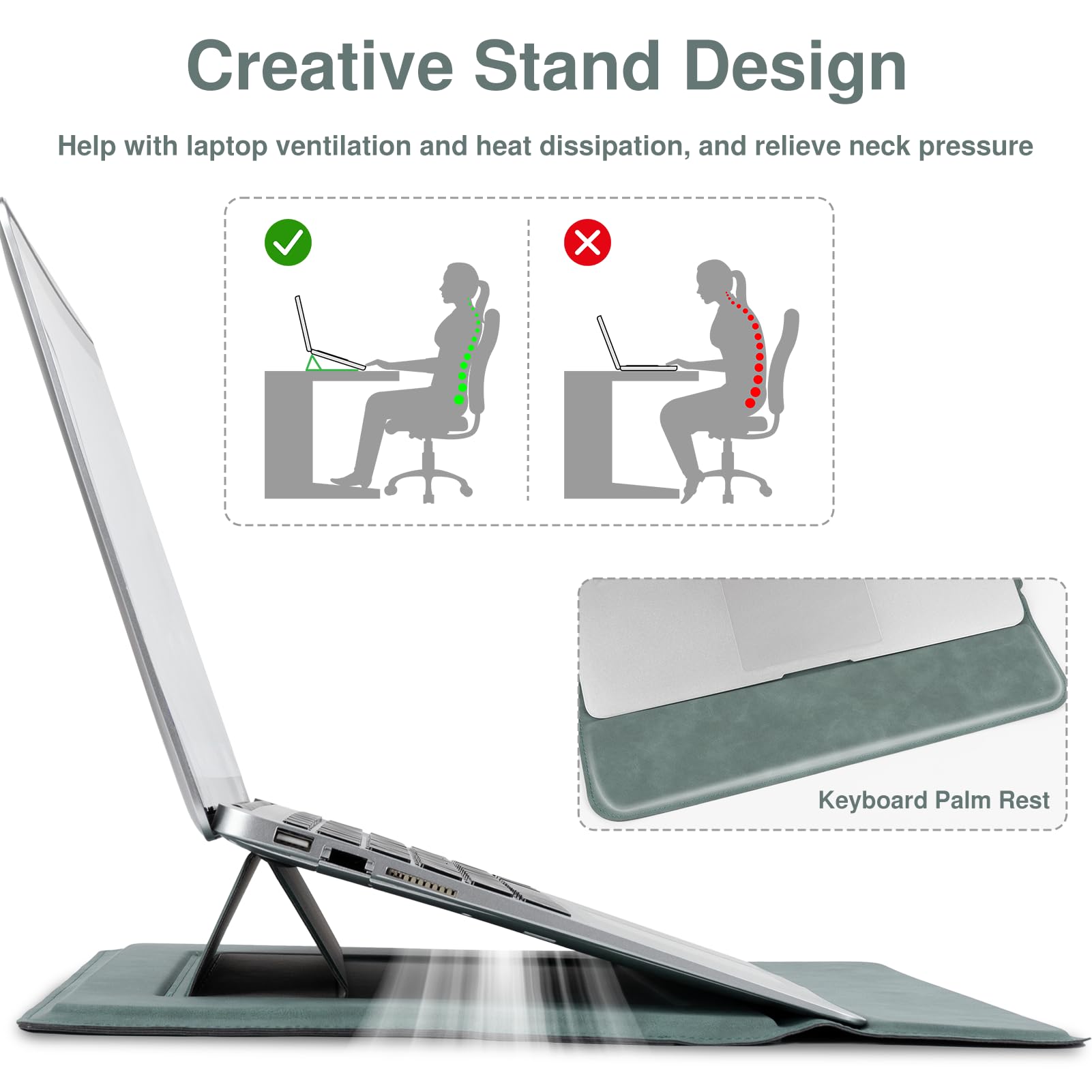 Magnetic Envelope Closure: Sleek envelope design with invisible magnets allows easy access while keeping your laptop secure inside the sleeve without slipping out