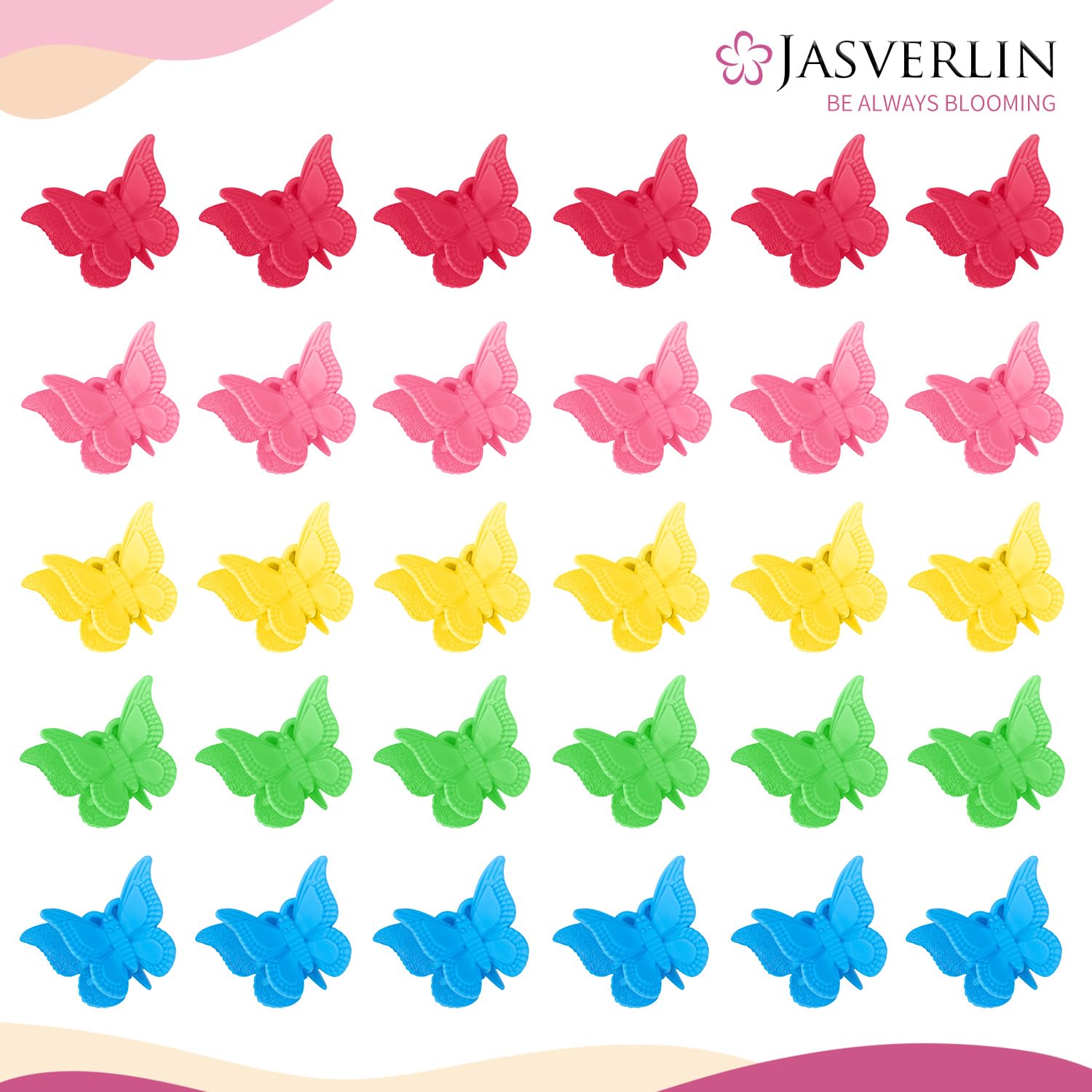 Become a Stunning Fairy with JASVERLIN Butterfly Hair Clips Elevate your look with our collection of vibrant butterfly clips. Designed to capture attention and bring back to 90s. Crafted with premium plastic, non-slip, child-friendly, and perfect for shining. Why Choose Our Butterfly Hair Clips? Our butterfly clips are more than just an accessory, they're a style statement. Perfect for all ages, kids and women. Whether you're fine, thin, thick or curly hair, rocking braids, ponytails, or updos, our clips add the finishing touch to your look. Why not use them to add an extra touch of style to your birthday parties, dance parties, music festivals, anniversaries, dates. Package Includes: 50 premium butterfly clips in 5 vibrant colors & a container for easy organization. Embrace the style of the Y2K and add a sprinkle of fun to your look with our JASVERLIN Butterfly Hair Clips. Perfect for all hair types and styles, the fun and fashionable choice for any occasion. Please Note: Include small parts, recommended to keep out of reach from children under 3 years old.