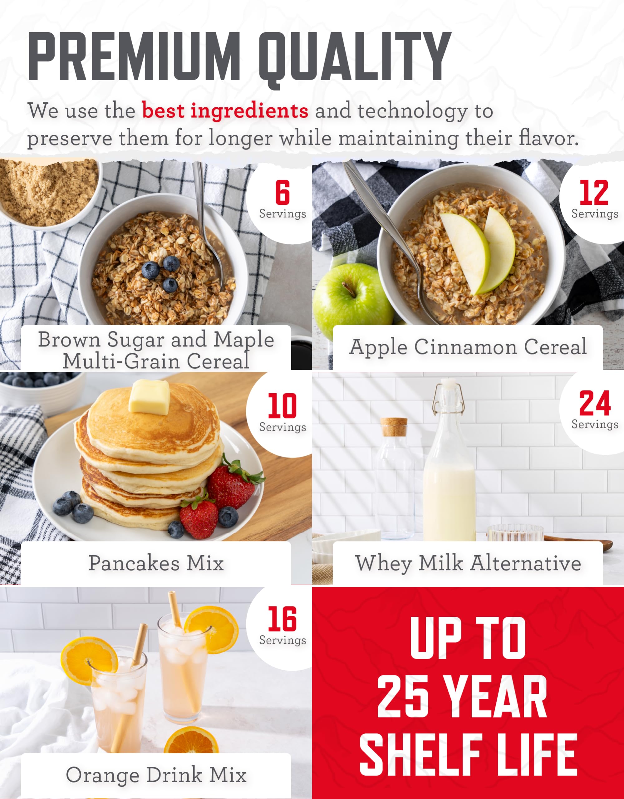 SURVIVAL ESSENTIAL: With 100 servings of gourmet entrées & breakfast meals, ReadyWise Sampler Bucket is the perfect starting point for anyone serious about preparing for the future. Stay ready for anything, from power outages to outdoor adventures!