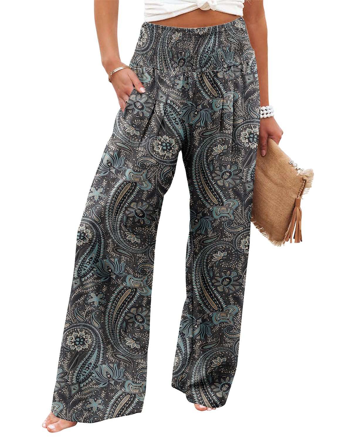 Features - Women's casual palazzo pants, smocked elastic waist, wide leg, long, plaid&stripe design, soft and breathable. Our pants are perfect for daily wear, lounging at home, hanging around outside, traveling, vacation, or office work. Easily matched with slippers, heels or sneakers.