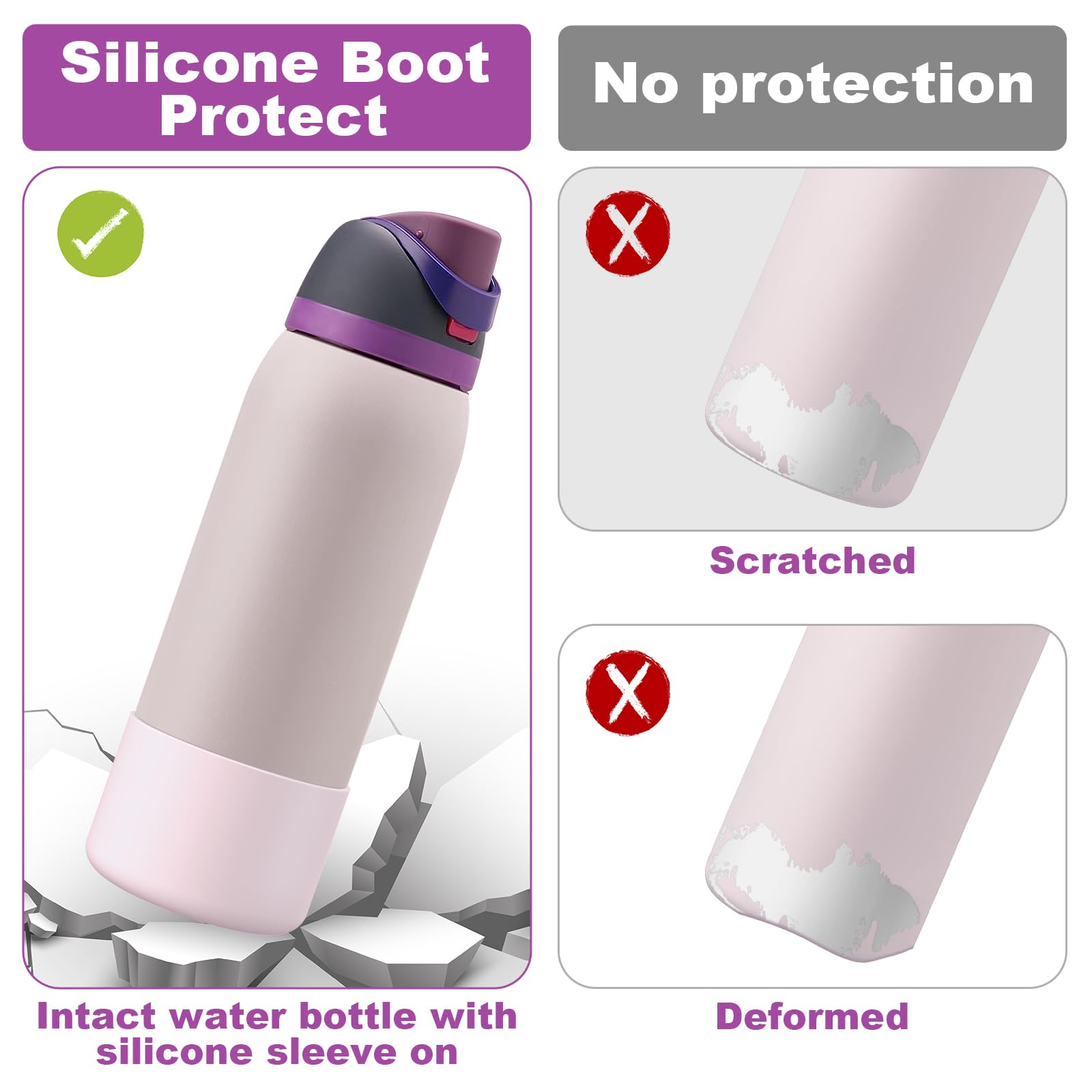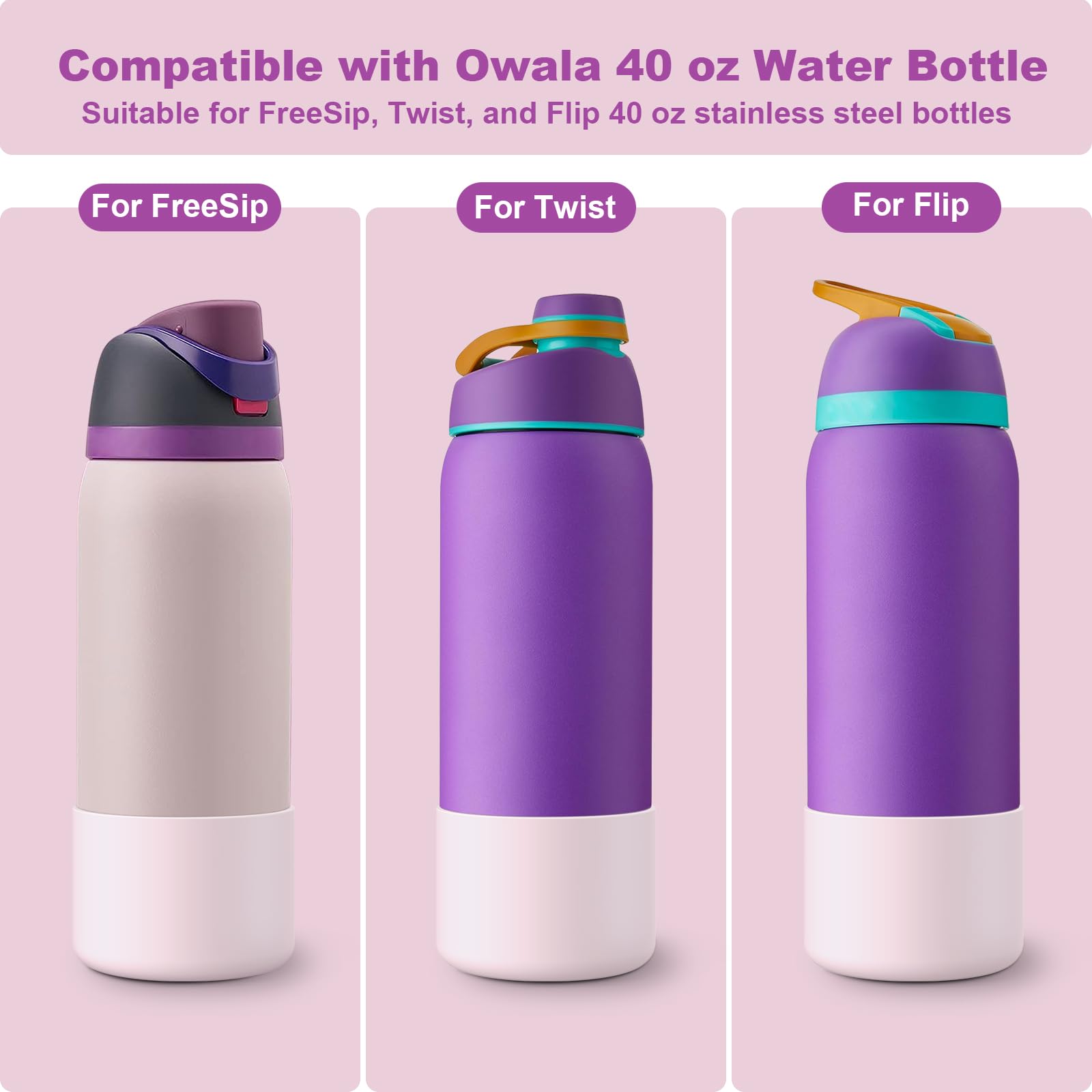 【Perfect Compatiblity】The silicone boot is suitable for Owala 40oz FreeSip, Twist, and Flip stainless steel water bottles. It is precisely made according to the size of the original cups, which perfectly fits the cup bottom and won't fall off easily.