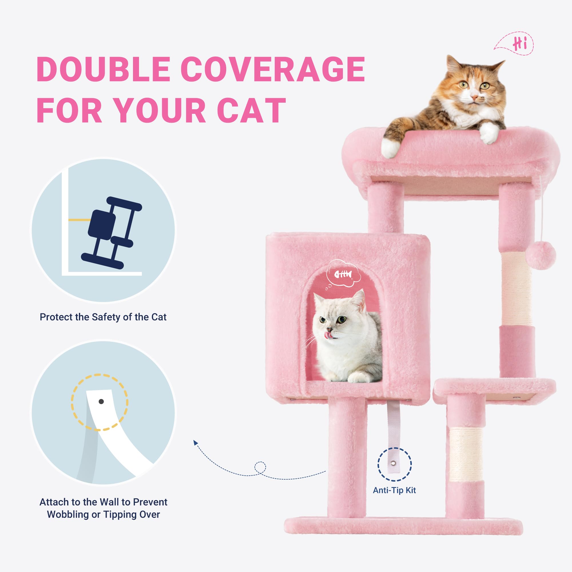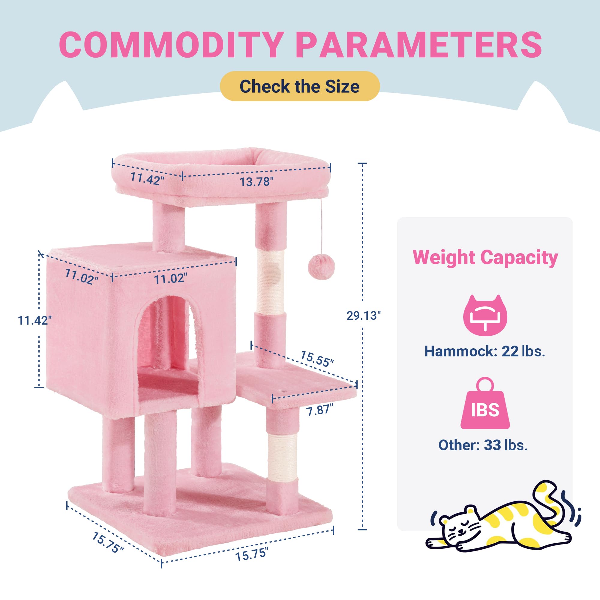 Stable and Durable: The sturdy structure, reinforced with an anti-tip kit, ensures stability and supports up to 33 lbs.so the cat tree can remain stable when the cat jumps in or out