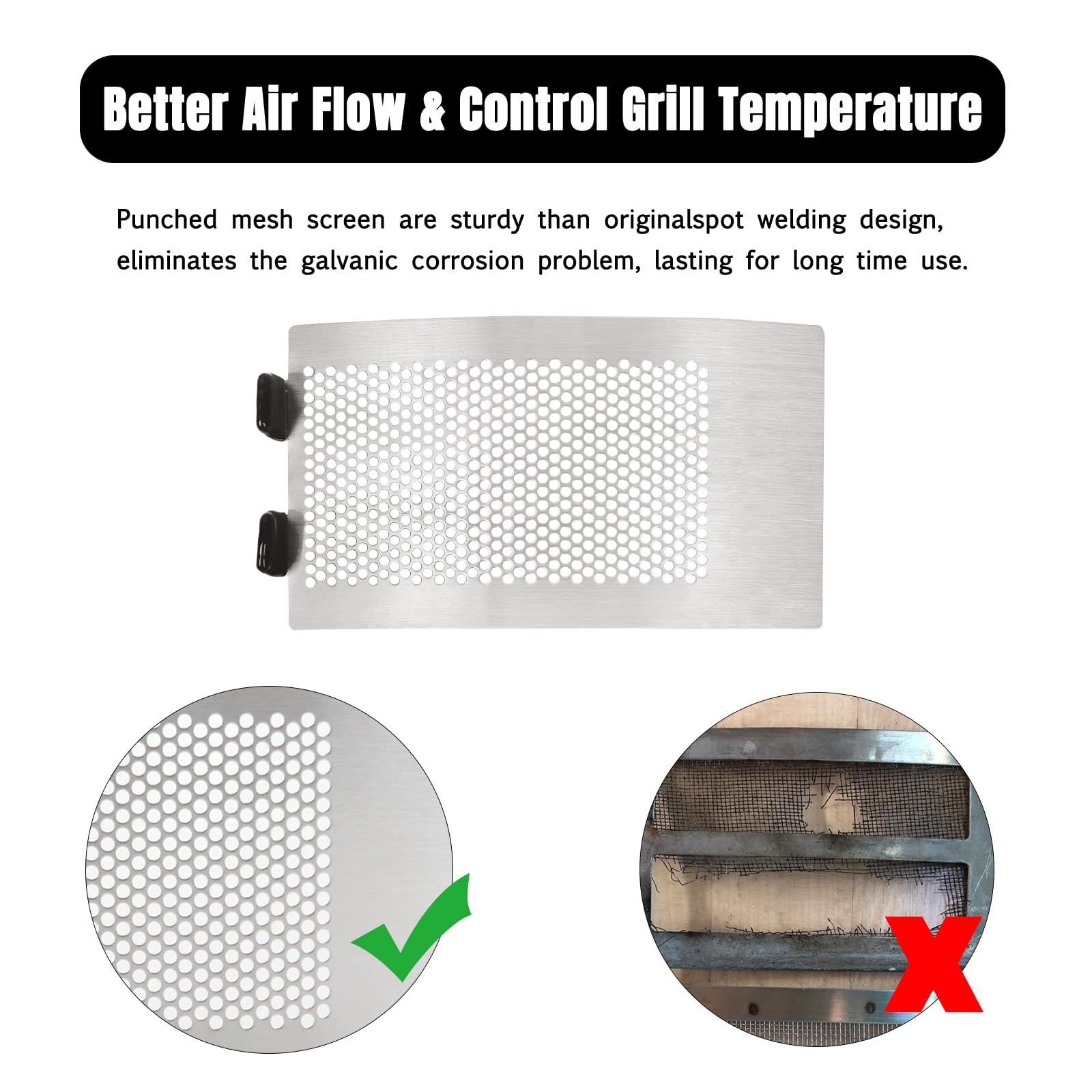 【Includes Mesh Screen Only】This is a replacement punched mesh screen for the lower slider vent on your big green egg, work with our draft door, you can slid the mesh panel very smoothly, no more scratch your hand
