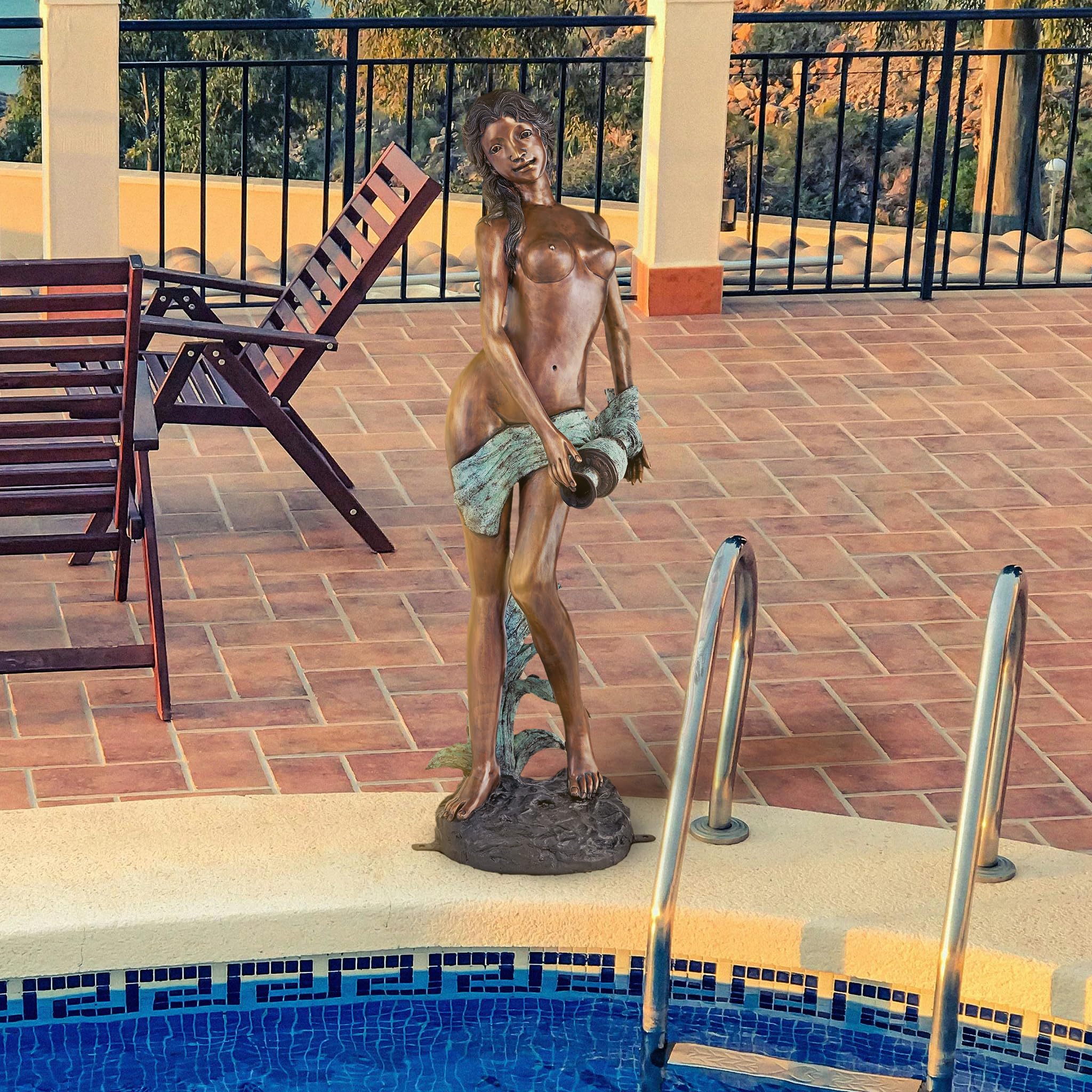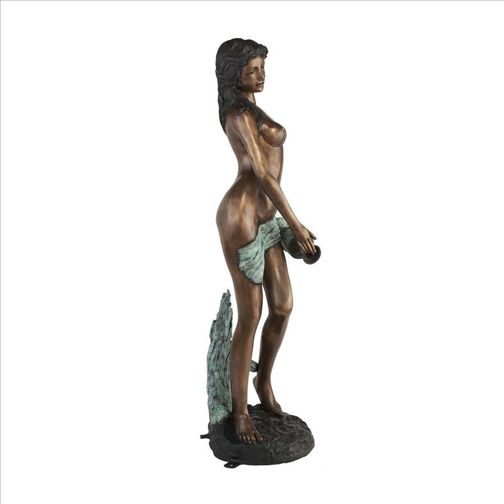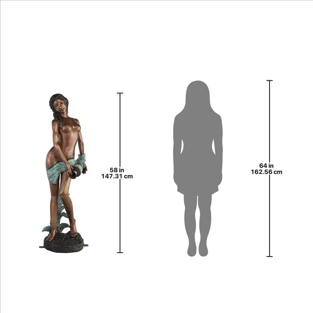 It’s hard to imagine a more fittingly beautiful image to add to a spa or classic garden than the most beautiful of the Oceanides, Dione, the stately water bearer. Reminiscent of the classic statuary in ancient Greek and Roman cities, our exclusive work stretches almost five feet tall. Exquisitely sculpted from the curls of her hair to the graceful lines of the urn she deftly balances. Our distinctive, 360-degree, bronze goddess of water statue is expertly finished with a hand-applied, classic sepia bronze patina accented by an antiqued emerald verde patina to bring out the amazing detail. Cast and crafted one-piece-at-atime in the traditional lost wax method, which highlights the detail of the sculpt and guarantees lasting beauty. Sure to be a garden focal point, this Design Toscano, heirloom-quality bronze water bearer maiden statue conveys that you take the exterior of your home as seriously as the interior. Piped so you may optionally cascade flowing water from this goddess’s water jug into your pond or fountain. Simply add the optional recirculating 290 GPH pond pump kit to create beautiful water music for your garden. Color patina is applied by hand one piece at a time, tone may vary slightly.